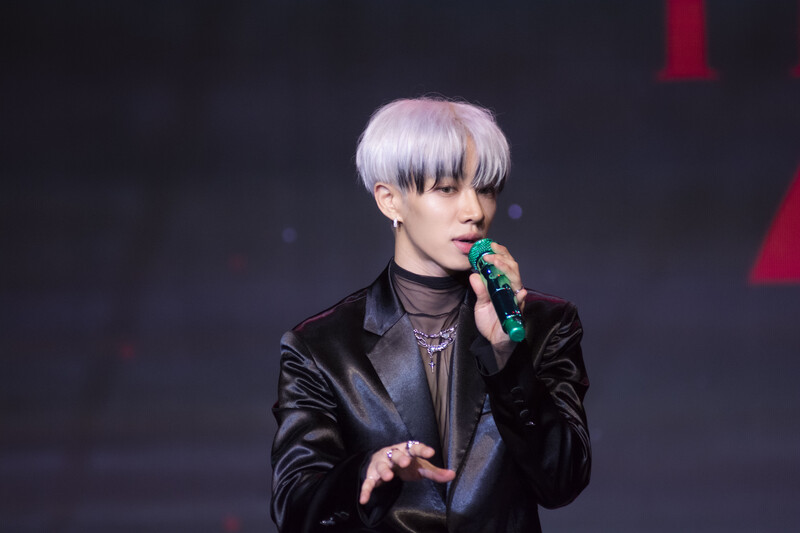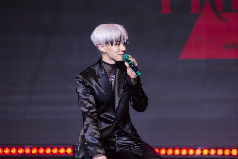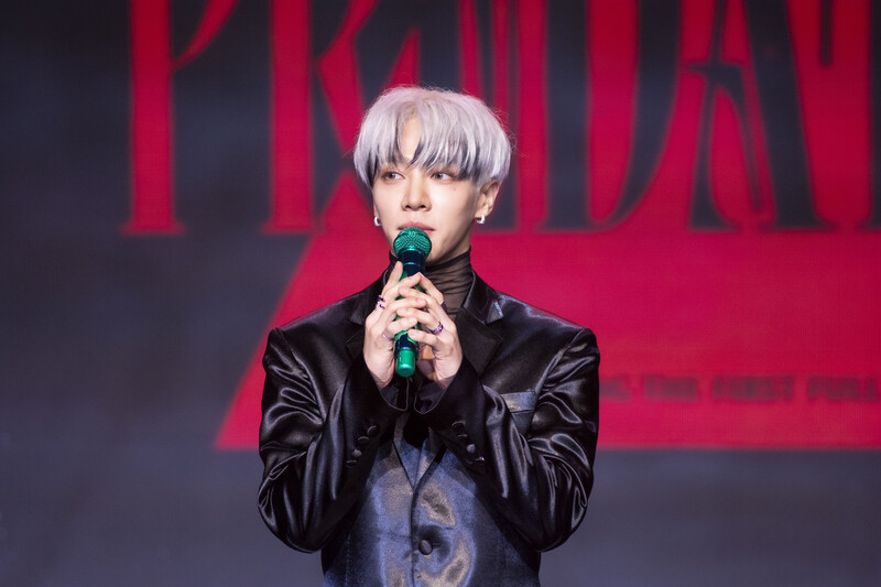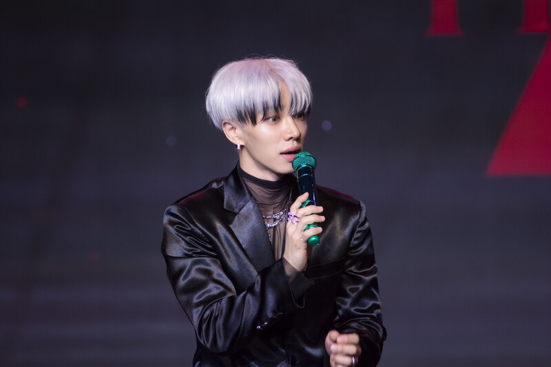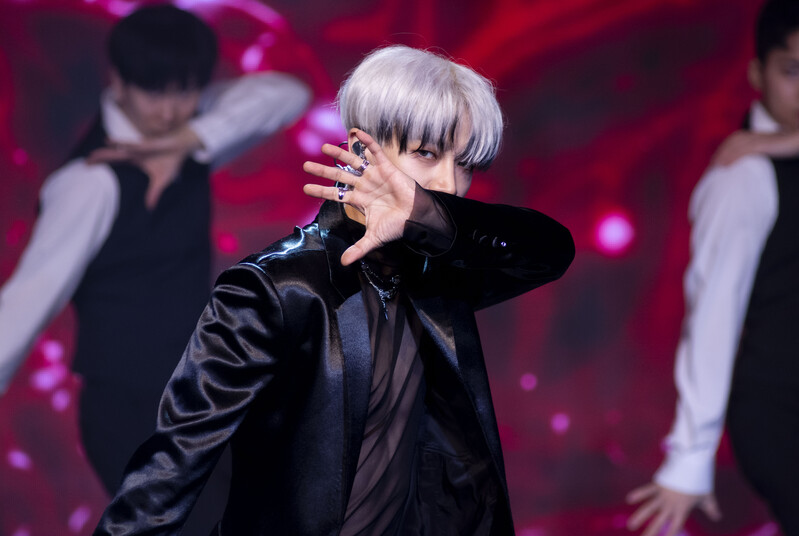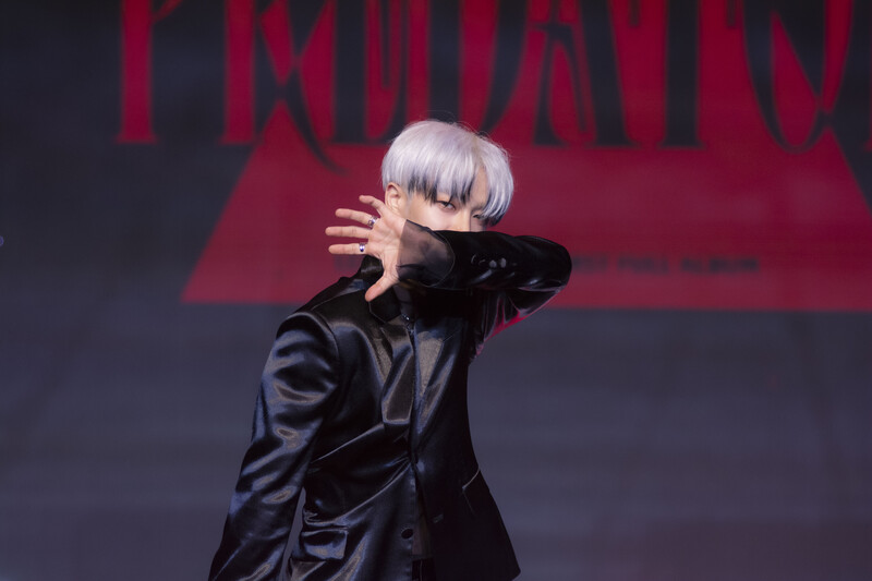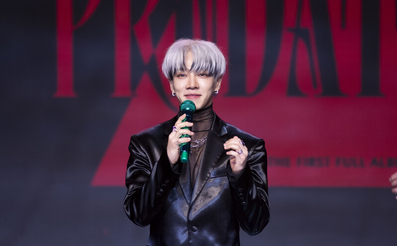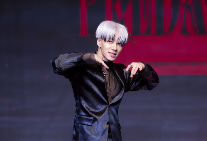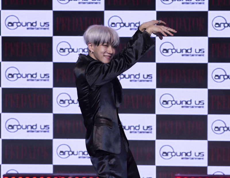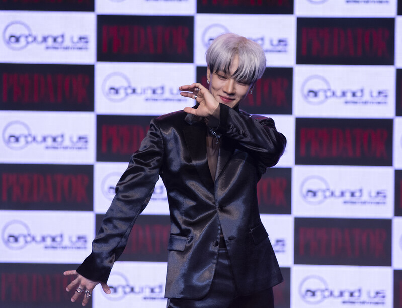 These photos, taken during the media showcase of K-pop boy group Highlight's Lee Gi-kwang's first full length solo album "Predator" show artist perform his title track "Predator," pose for his individual photos and answer questions throughout the session.