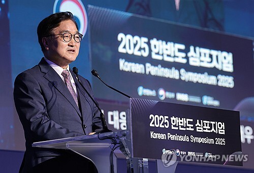 | ▲ National Assembly Speaker Woo Won-shik delivers a congratulatory speech at the Korean Peninsula Symposium on June 26, 2025. (Yonhap) |