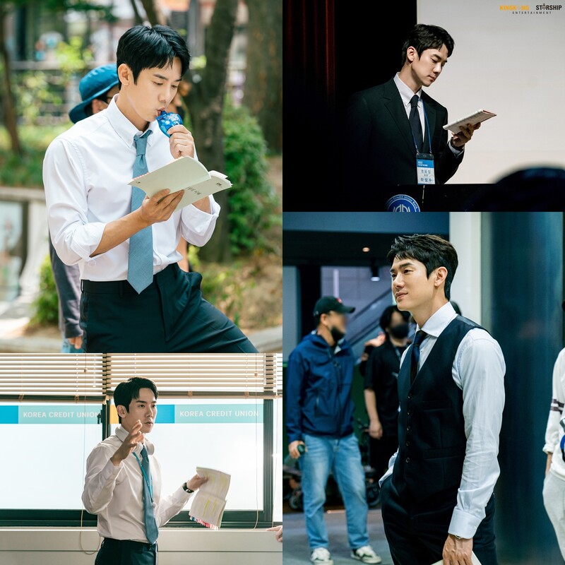 These photos, provided by Kingkong by Starship, show Yoo Yeon-seok's behind photos during filming of JTBC's Wednesday and Thursday drama "The Interest of Love."