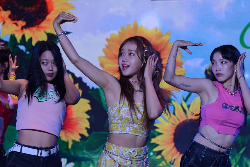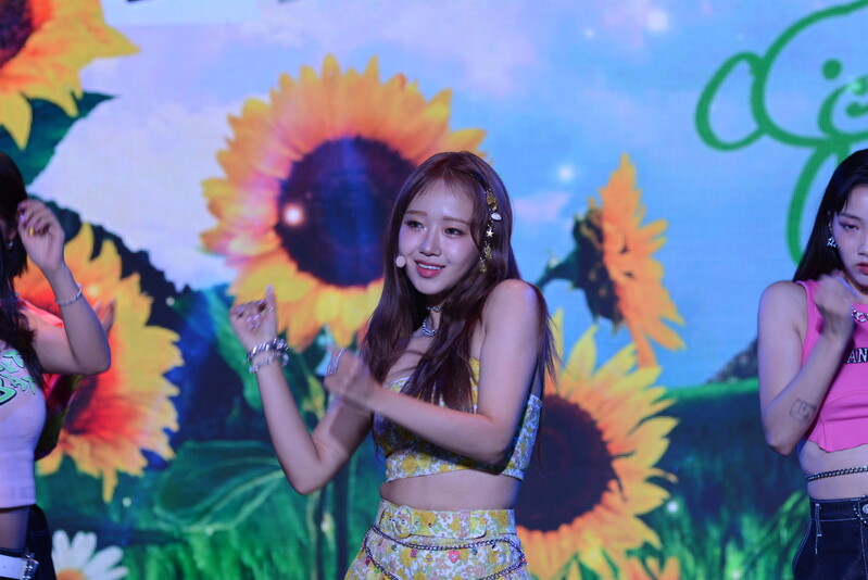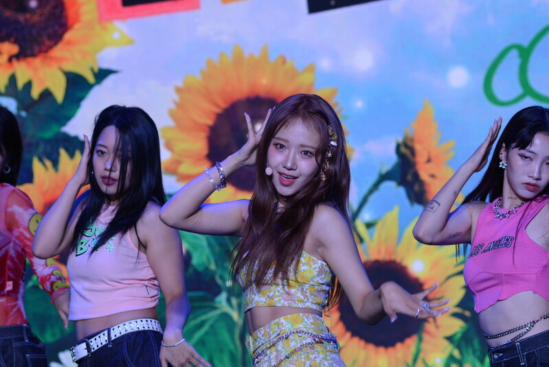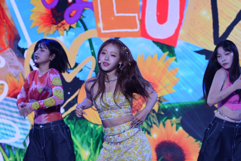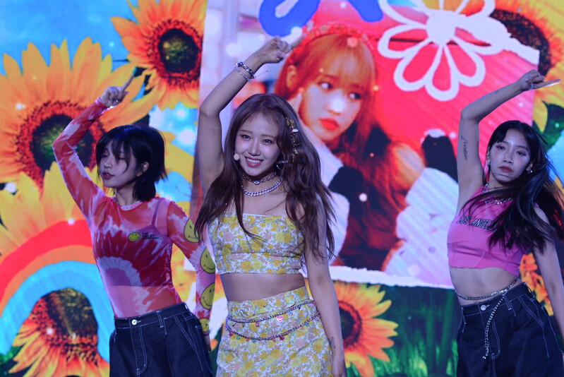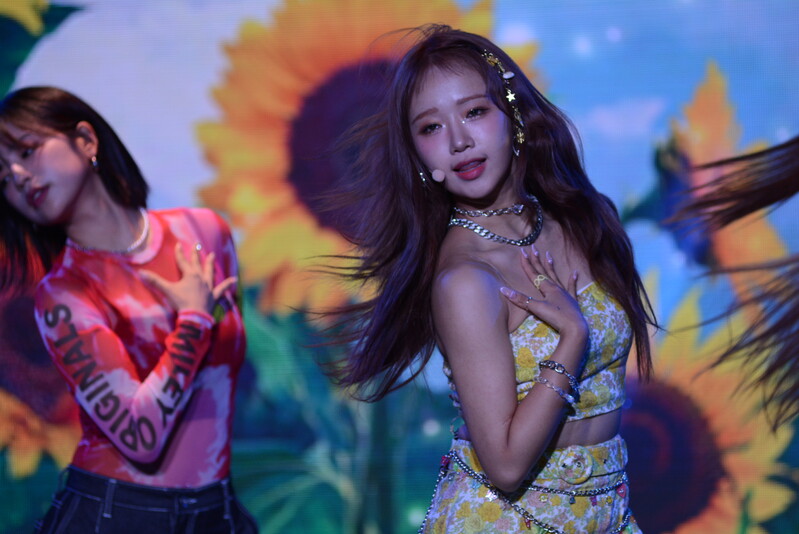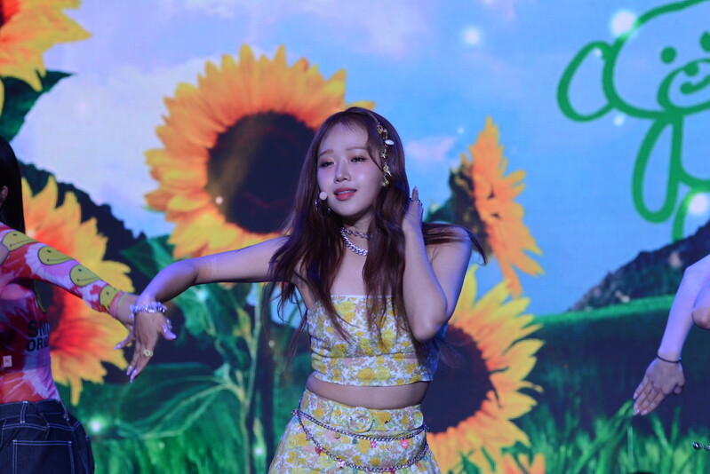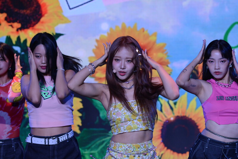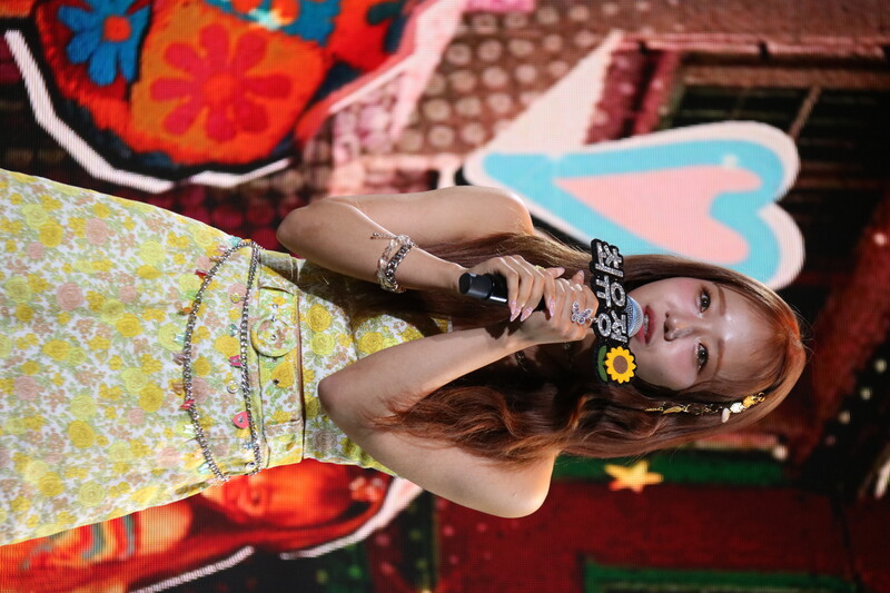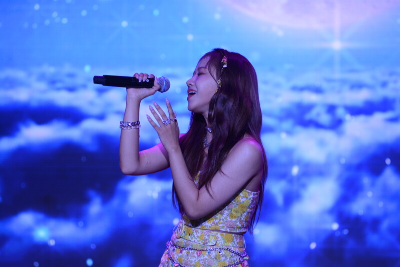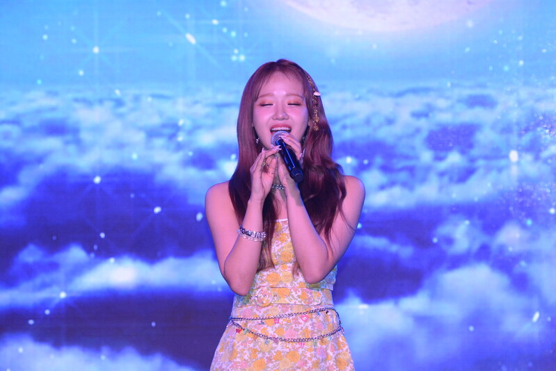 These photos, taken during the media showcase of Choi Yoo-jung's first solo single album "Sunflower" shows Choi Yoo-jung during the question and answer session and her performance of the title track "Sunflower: P.E.L" and "OWL," which is one of the tracks included within her singe album.