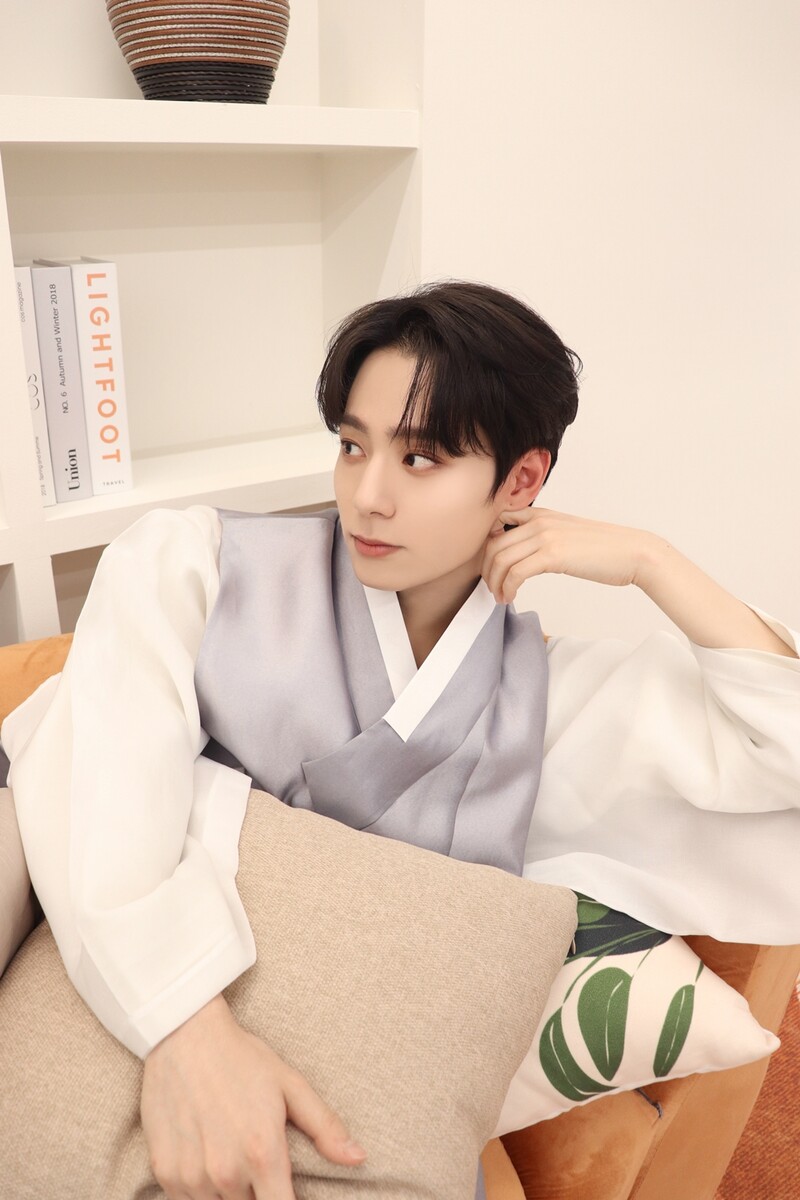These photos, provided by RBW, show ONEUS members wearing Hanbok and greeting fans for Chuseok holiday.