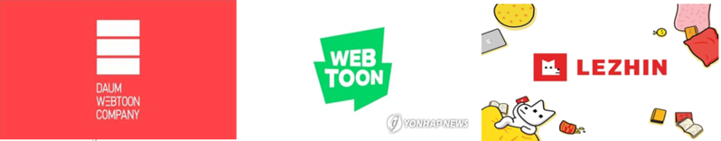 | ▲ These three pictures shows the logo for each webtoon portals from (left) Daum, Naver, and Lezhin. (PHOTO NOT FOR SALE) (Yonhap) |
