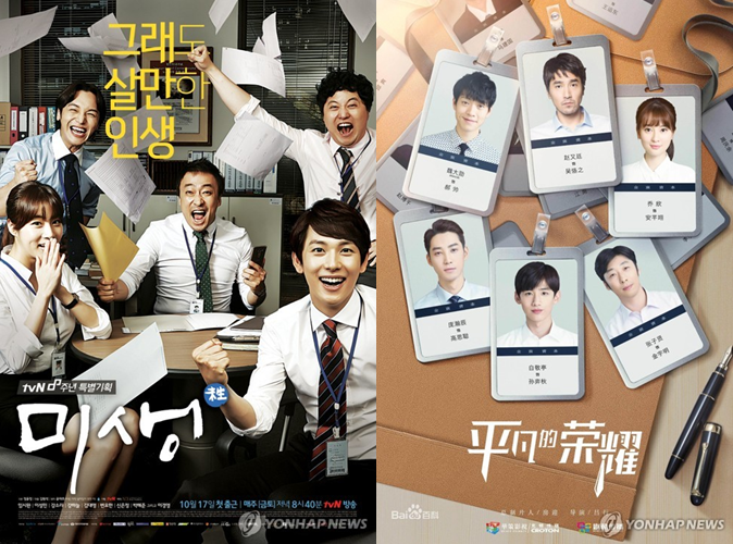 | ▲ The photo provided by CJ ENM on the left shows the drama poster for "Misaeng" while the captured photo on Baidu on the right shows the Chinese remake version of the same drama. (PHOTO NOT FOR SALE) (Yonhap) |