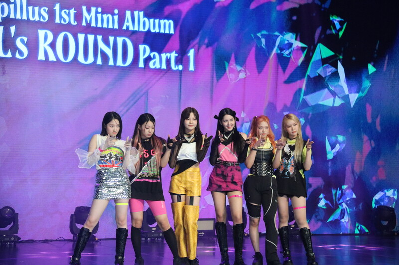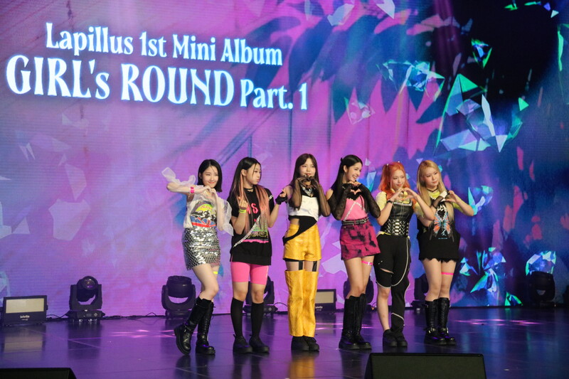 These photos show group photos of girl group Lapillus during the media showcase of their first mini album "GIRL'S ROUND Part.1," which will be released on Sept. 22 at 6 p.m. (KST)