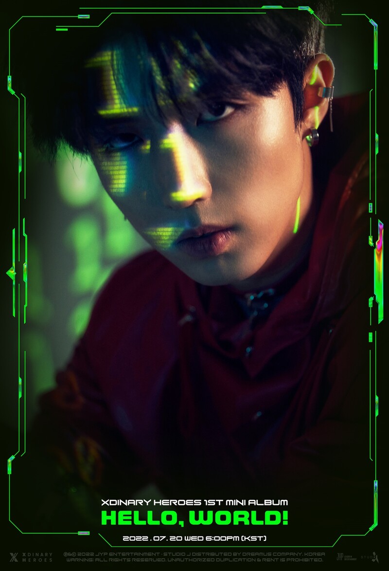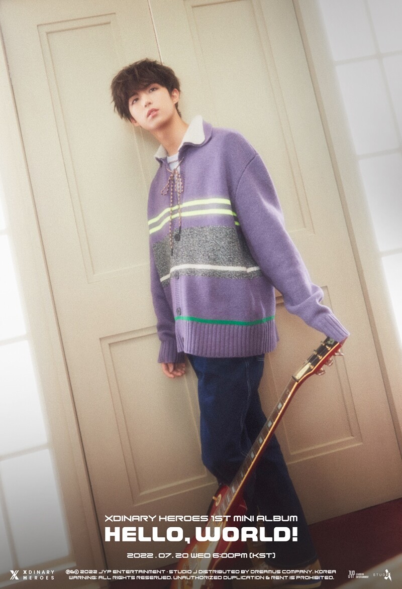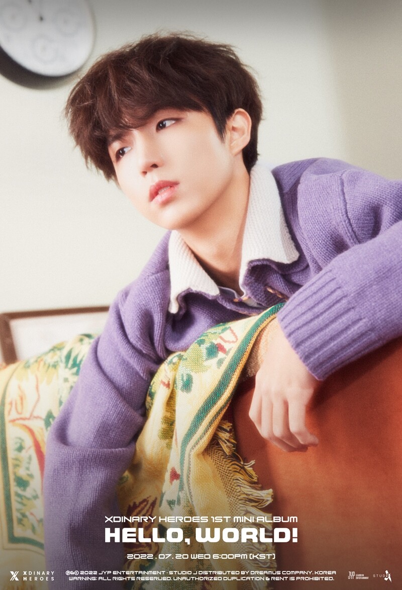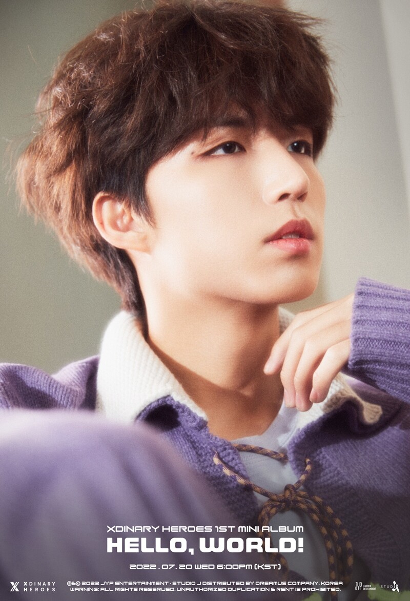 These photos, provided by JYP Entertainment, show individual teaser photos of Jun Han of boy band group Xdinary Heroes for their first mini album “Hello, world!,” which will be released on July 20 at 6 p.m. (KST).