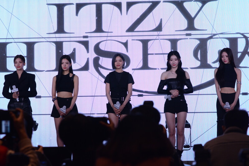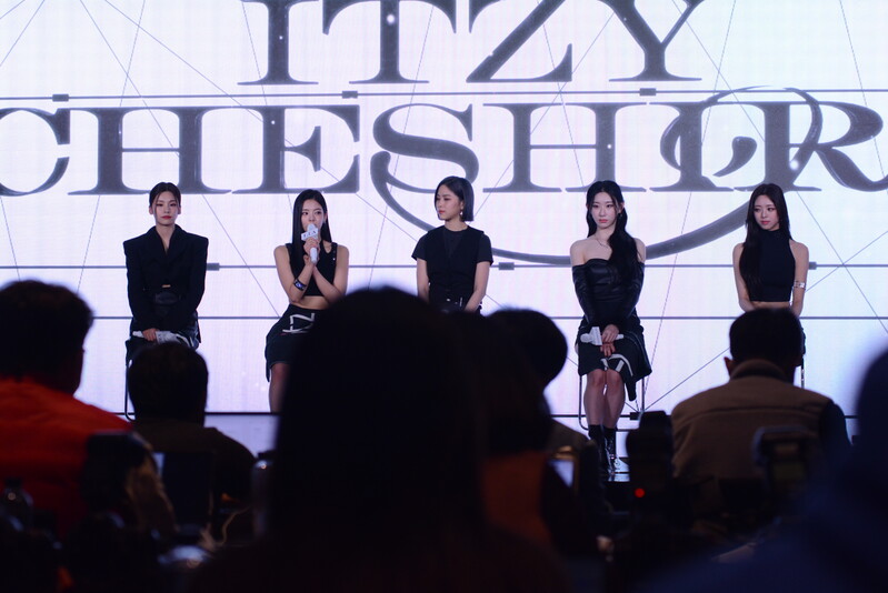 These photos taken during the press showcase of ITZY'S sixth mini album Cheshire shows members Yeji, Lia, Ryujin, Chaeryeong and Yuna participating in the showcase.