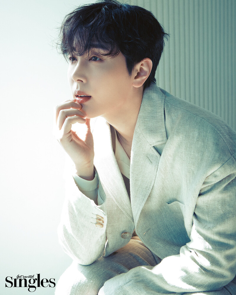 These photos, provided by FNC Entertainment, show the South Korean boy band SF9's Jaeyoon showing off his charms in a pictorial for Singles' April edition.