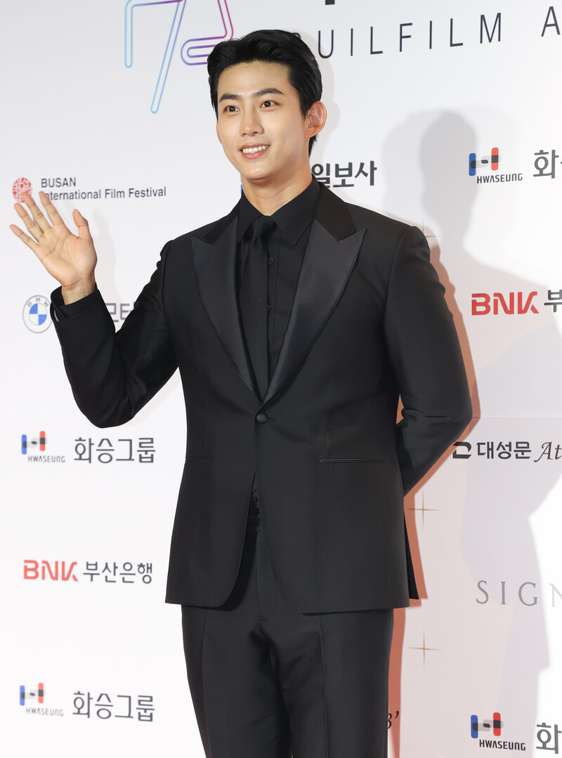 These photos show Ok Taec-yeon during the red carpet event of the 2022 Buil Film Awards in Busan, southeast of Seoul, on Oct. 6, 2022.