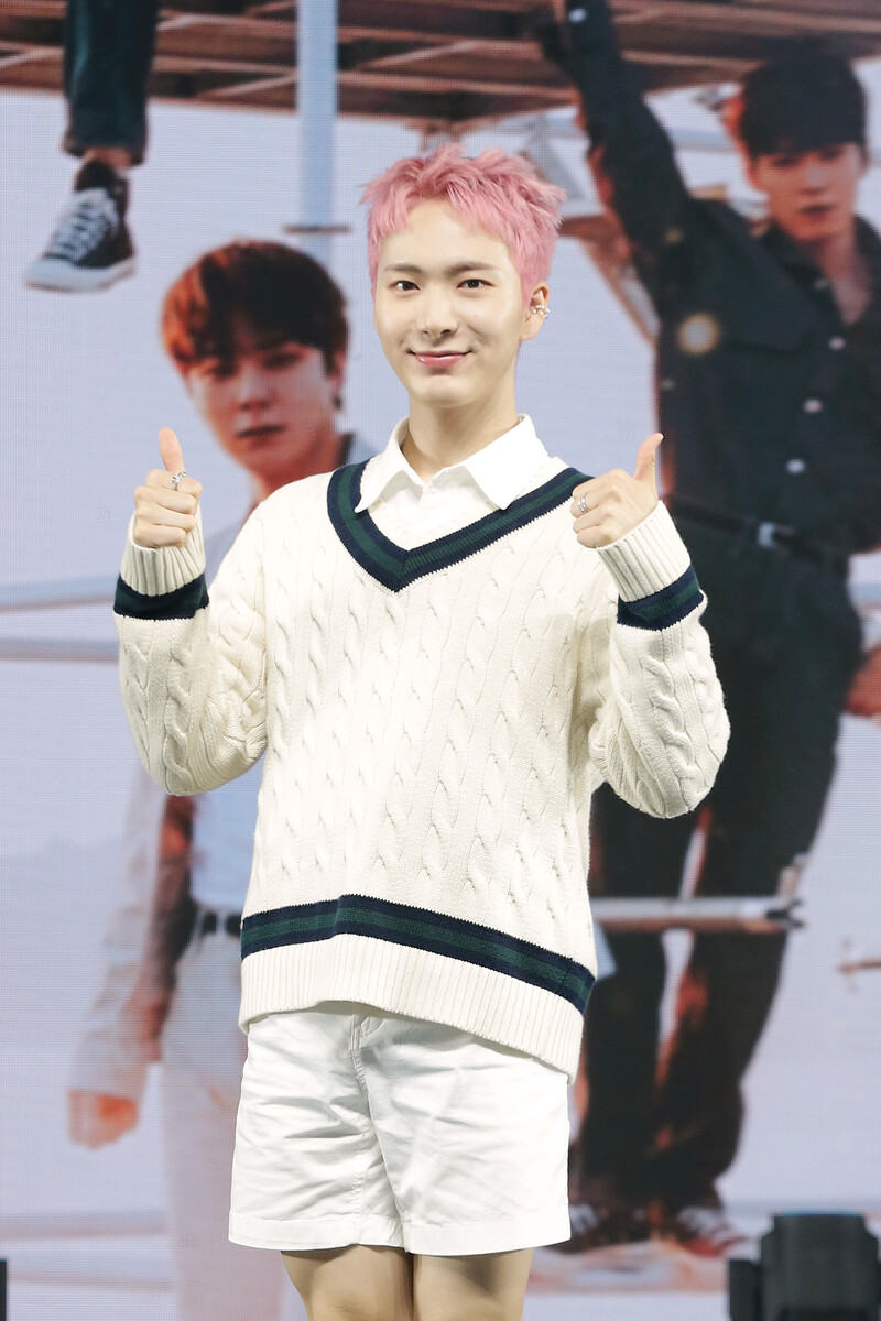 These photos, provided by Spire Entertainment, show K-pop boy group OMEGA X, which has held the media showcase for the first full album "樂서(Story Written in Music)," which will be dropped on June 15 at 6 p.m.