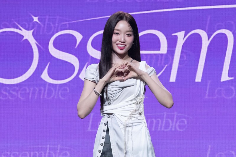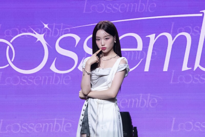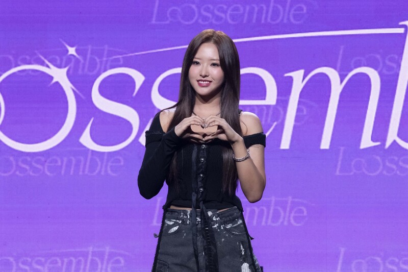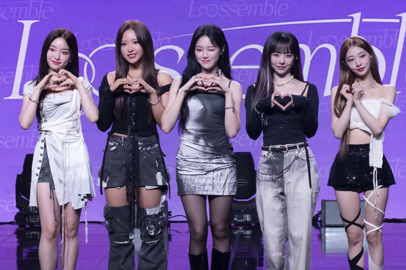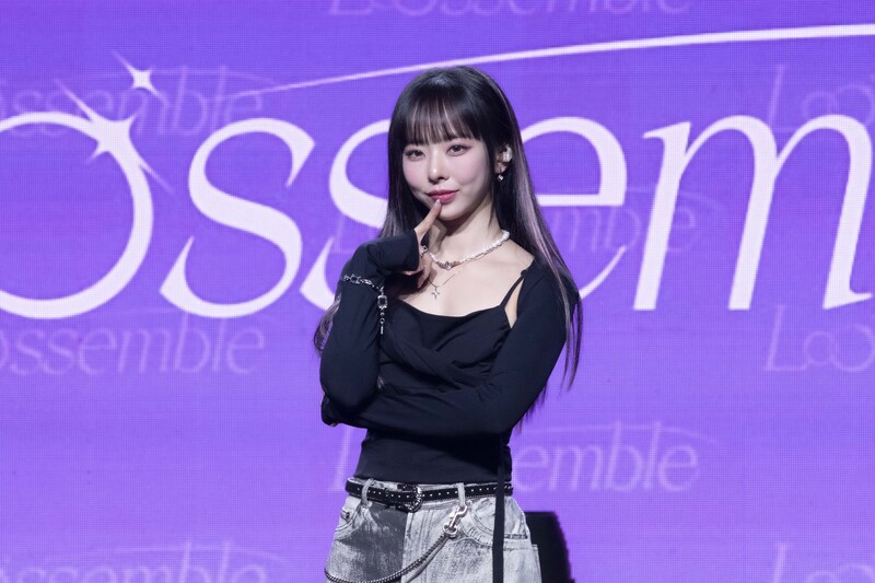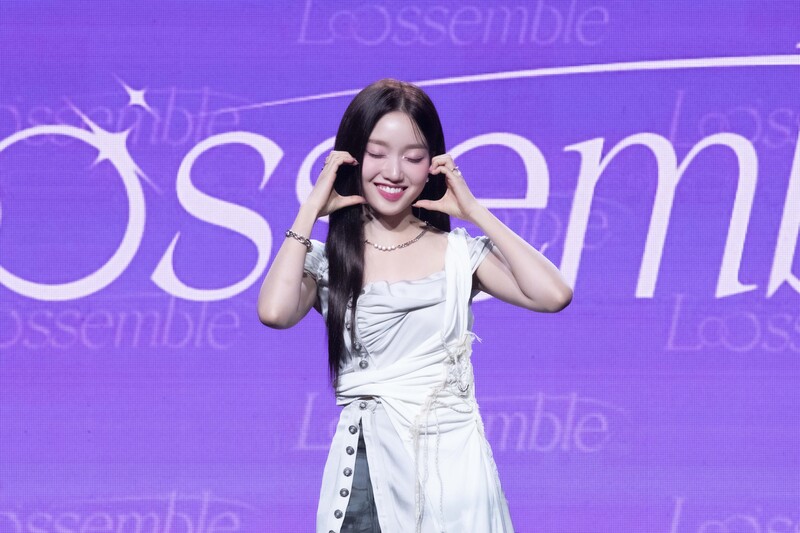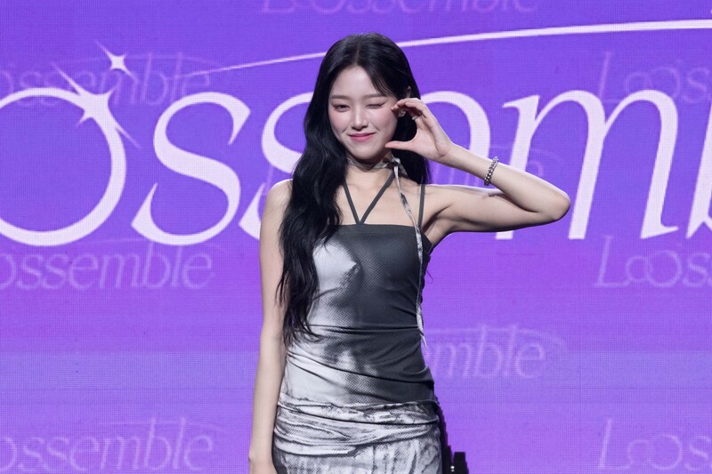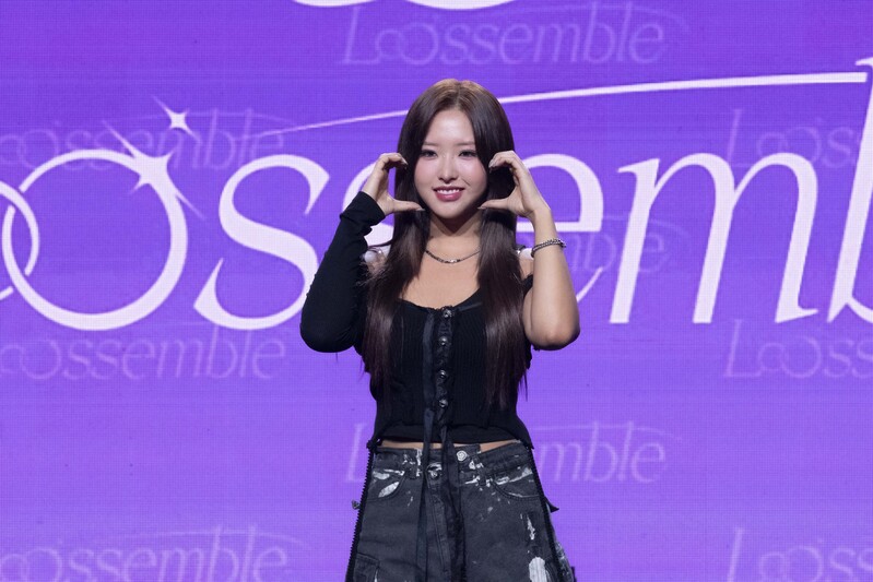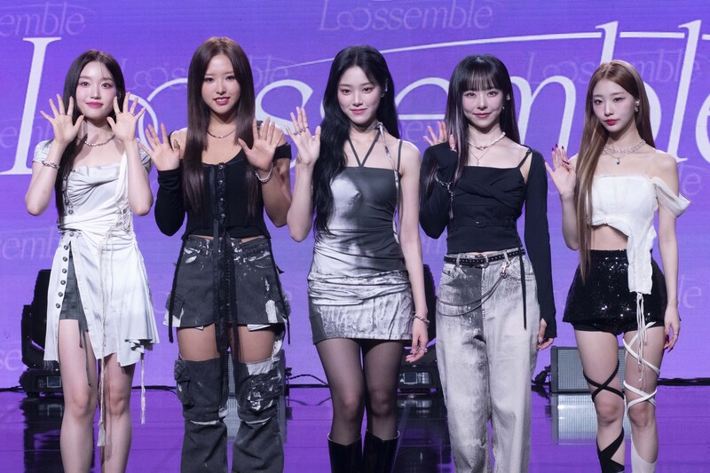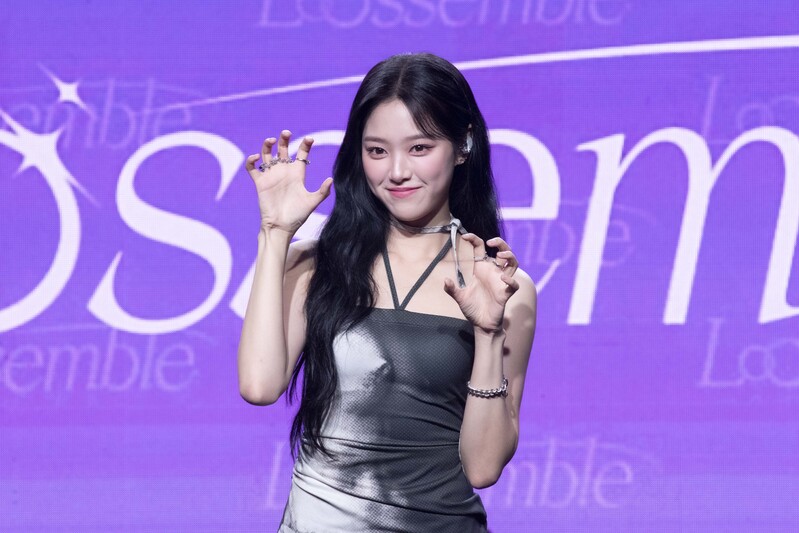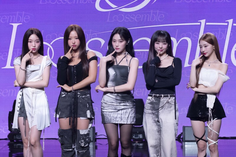 These photos taken during the media showcase of K-pop girl group Loossemble's first mini album 'Loossemble' show members posing for their individual and group photos.