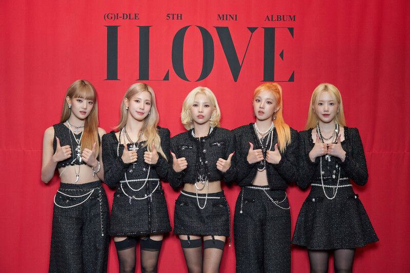These photos, provided by CUBE Ent., shows GIDLE members at photo wall of X-LOVE-SHOW, which took place on Oct. 17.