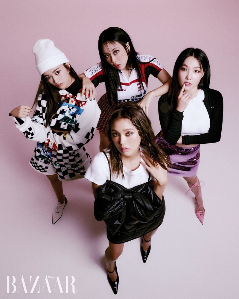 These photos, provided by W&, shows photo shoot of IVE's Ahn Yu-jin with members of tvN variety show "Earth Arcade," Lee Young ji,Lee Eun-ji, and Mimi from OH MY GIRL.