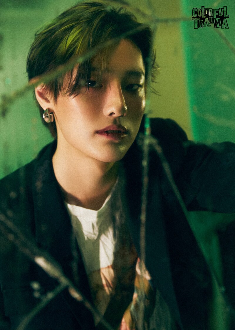 These photos, provided by Yue Hua Entertainment, show WOODZ's second concept photos for the fourth mini-album "COLORFUL TRAUMA" in the TRAUMA version. The singer's upcoming mini-album will drop on May 4 at 6 p.m.