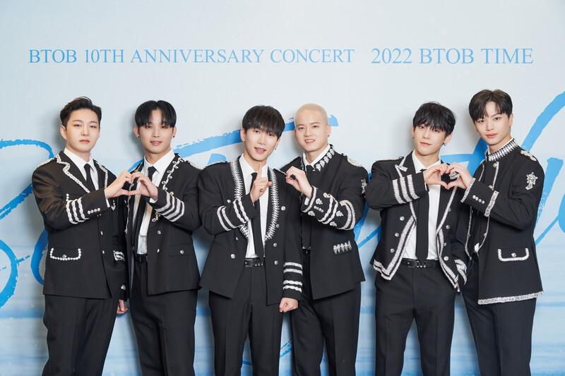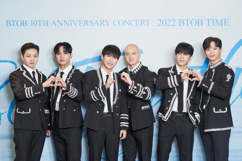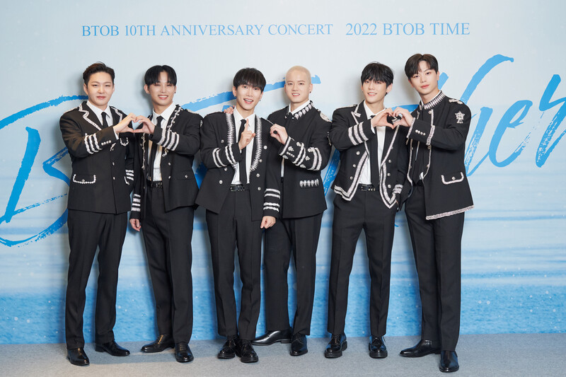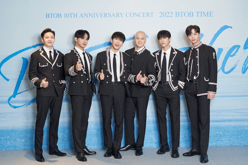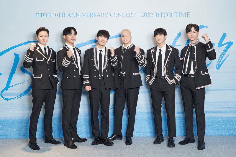 These photos, provided by CUBE Ent., shows group photos of BTOB members during the press conference for BTOB's 10th anniversary concert "2022 BTOB TIME Be Together."