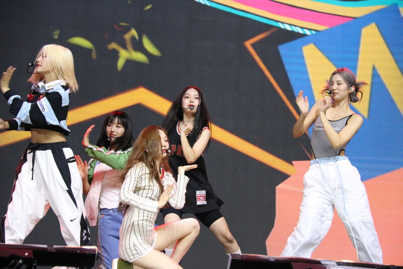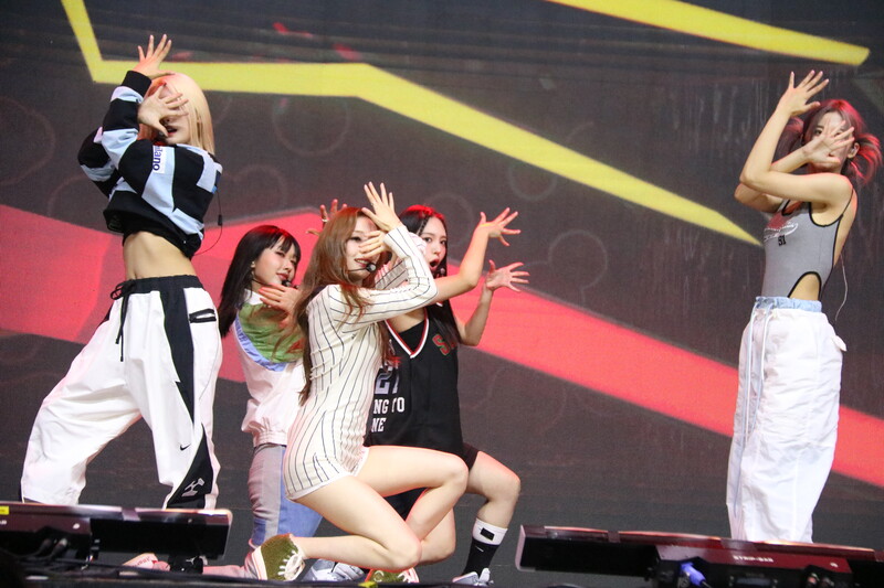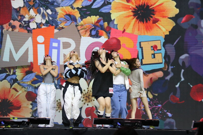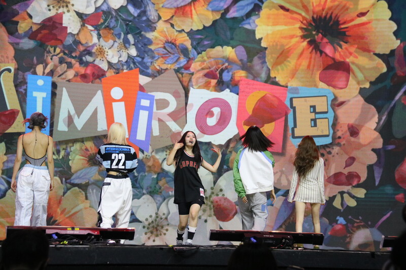 These photos show Mimiirose performing their title song "Rose" during the media showcase of their debut album AWESOME, which will be released Friday at 6 p.m.