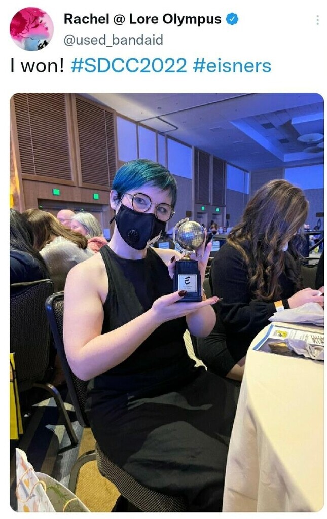 According to the web page of “San Diego Comicon International”, Rachel Smythe’s ”Lore Olympus” has been selected as the Eisner Award Winner for Best Web comic on Sunday.
