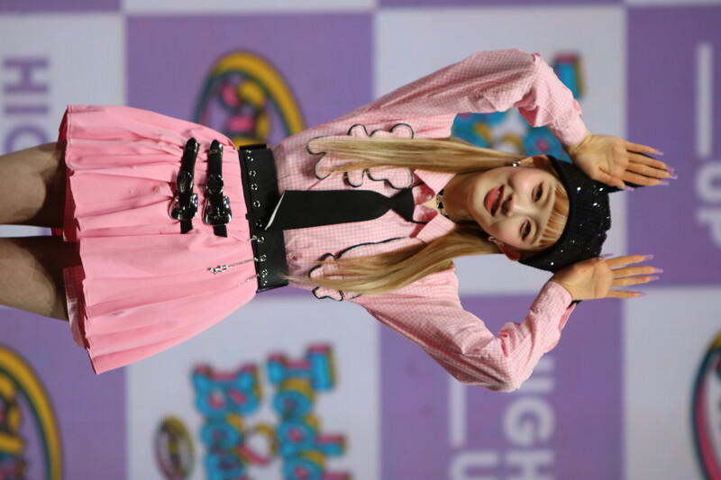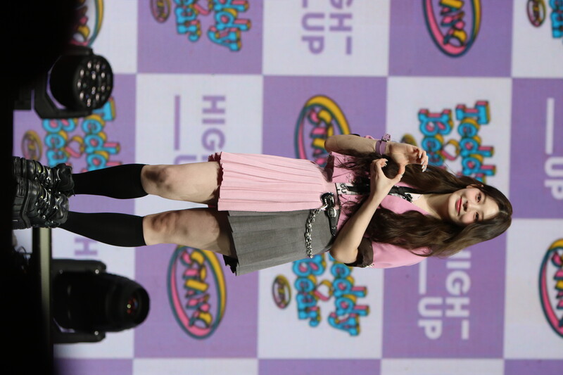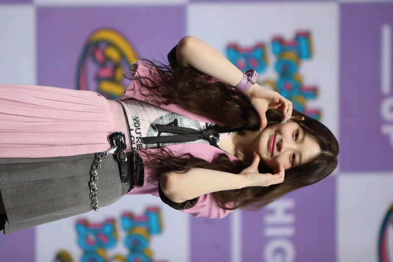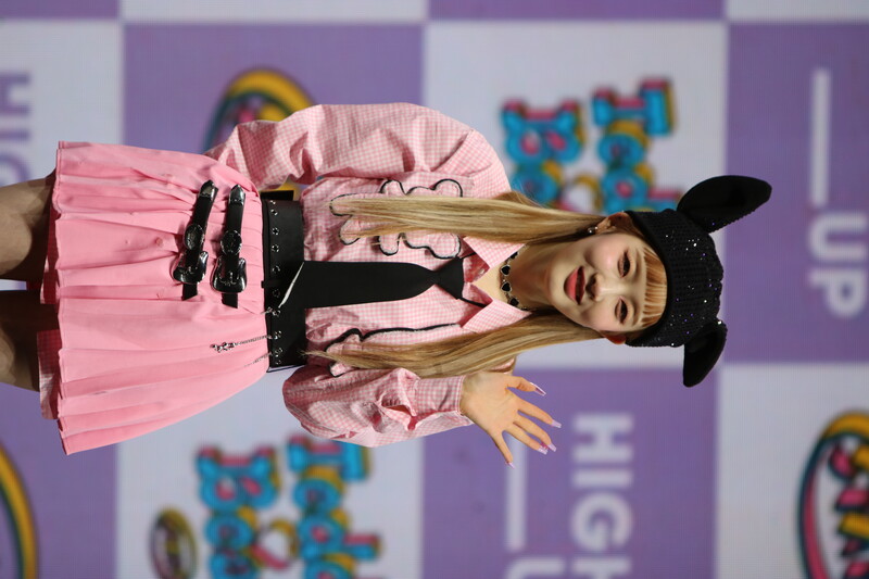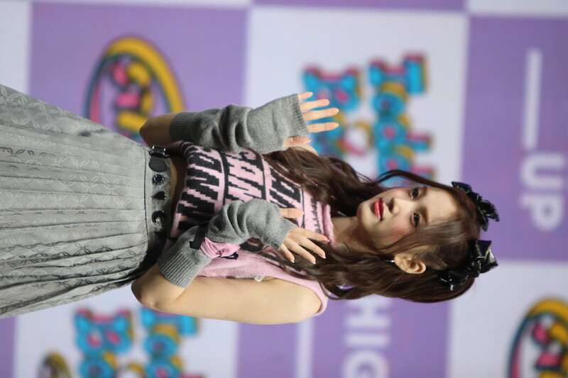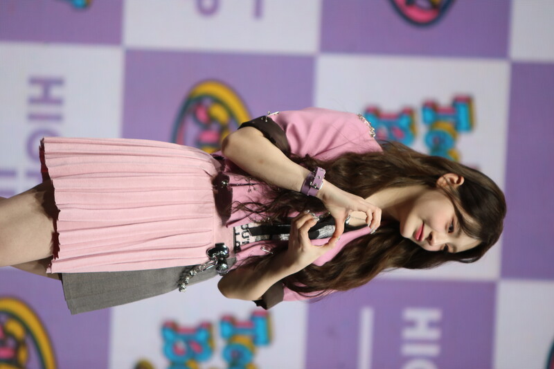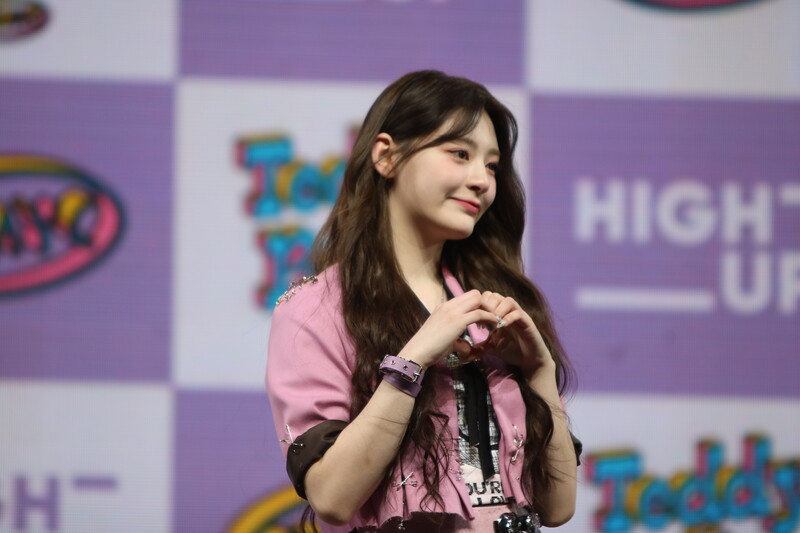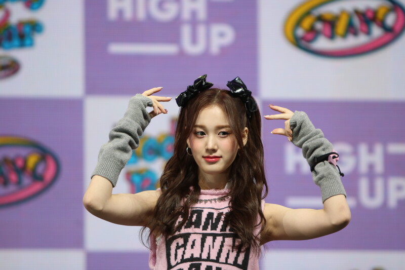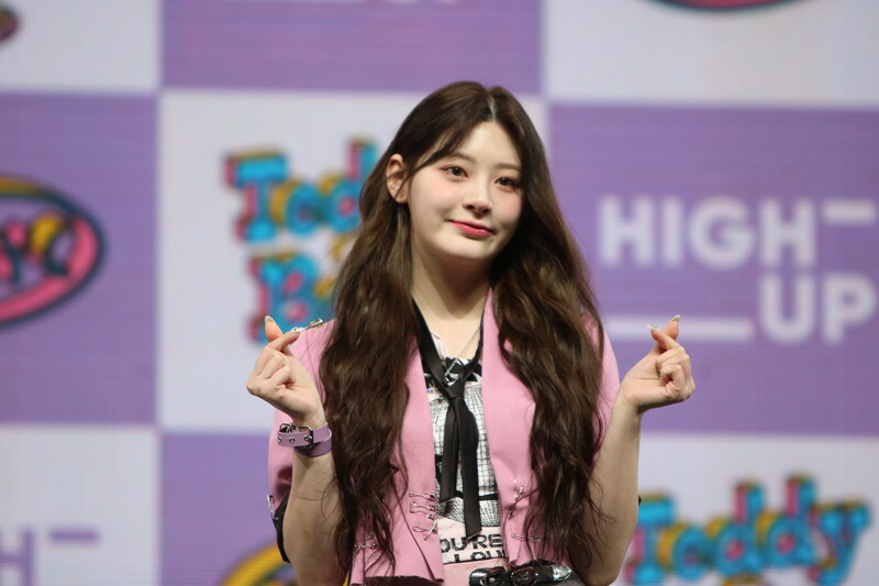 These photos show J, Seeun, and Sieun from STAYC during the media showcase for their 4th single album "Teddy Bear."