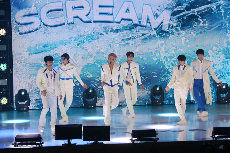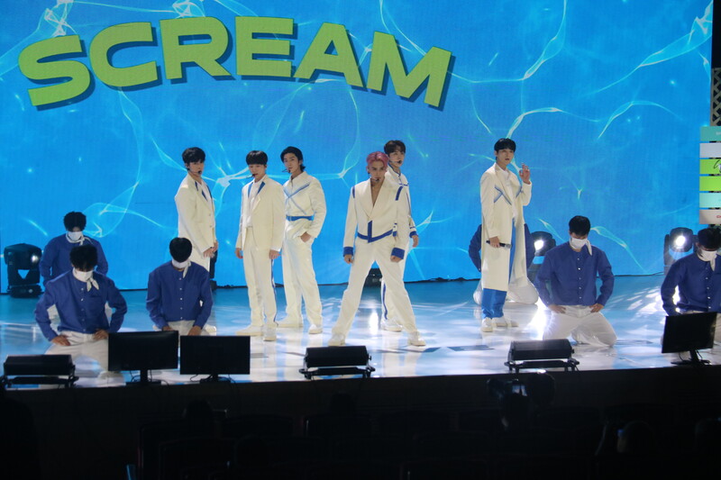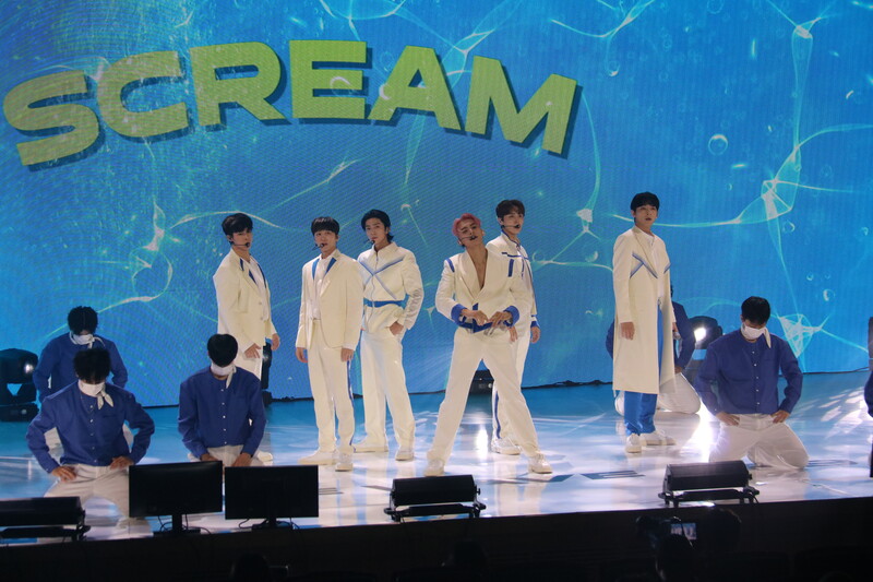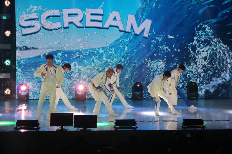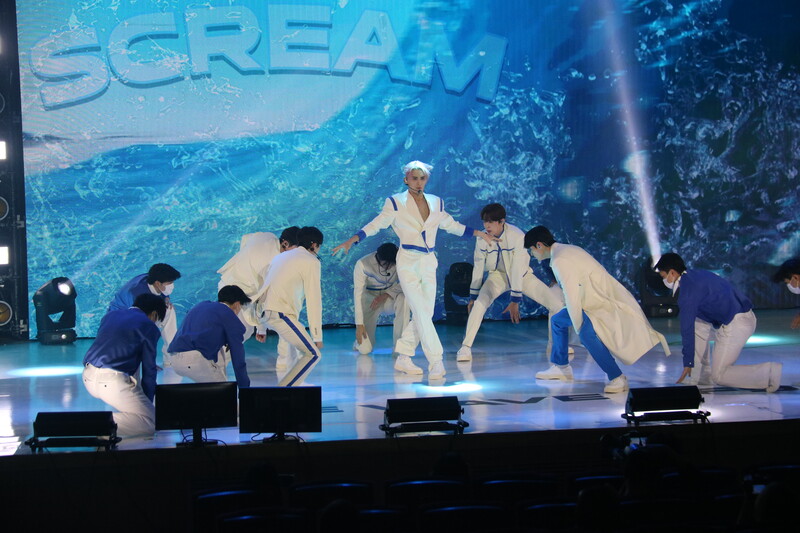 These photos, show SF9 at the press conference performing their title song "SCREAM," which will drop on July 13 at 6 p.m.