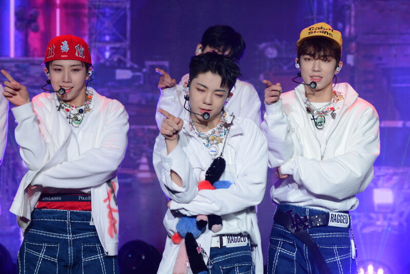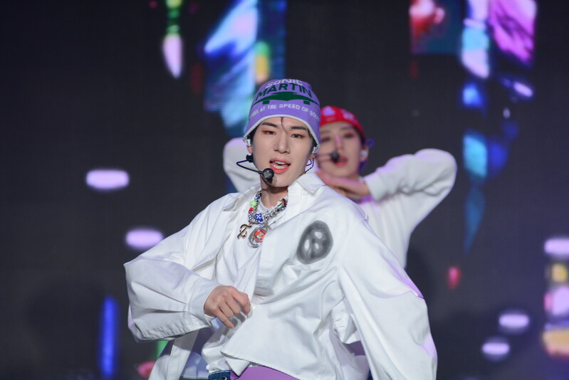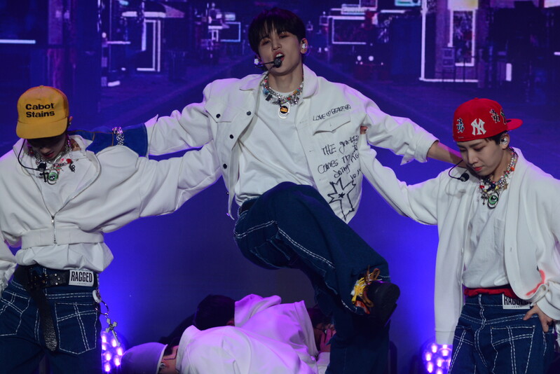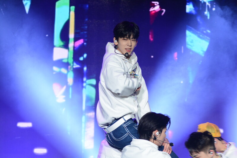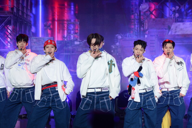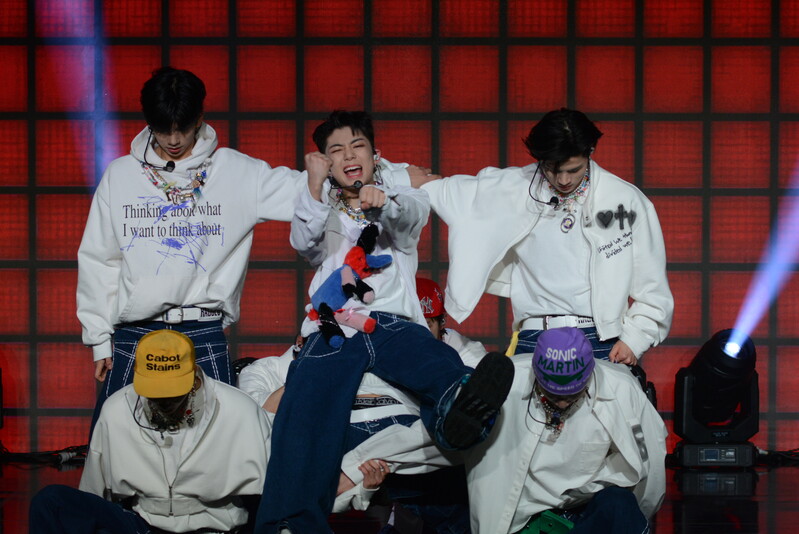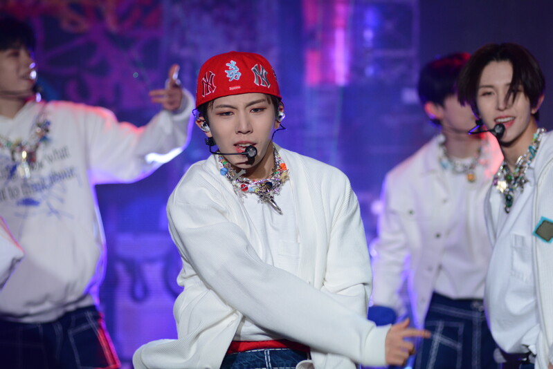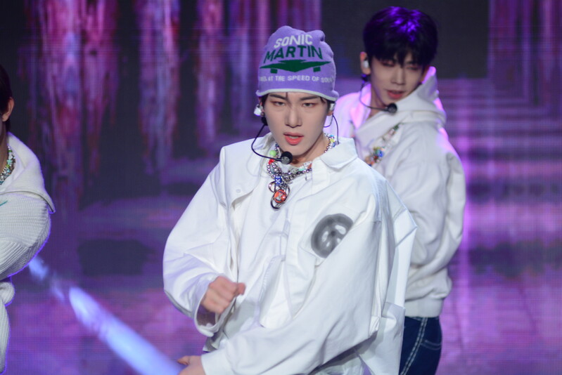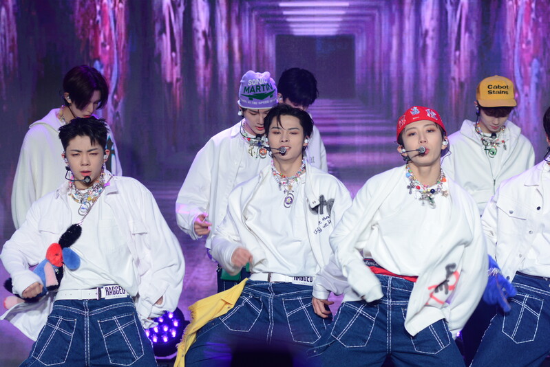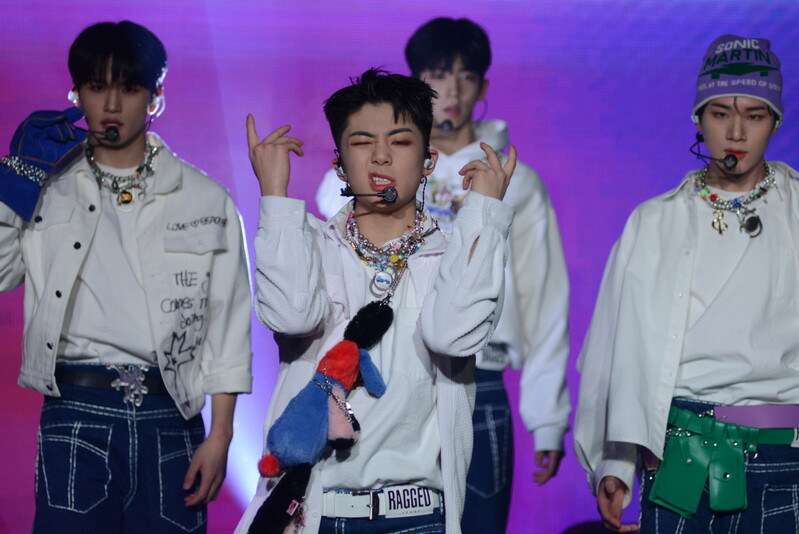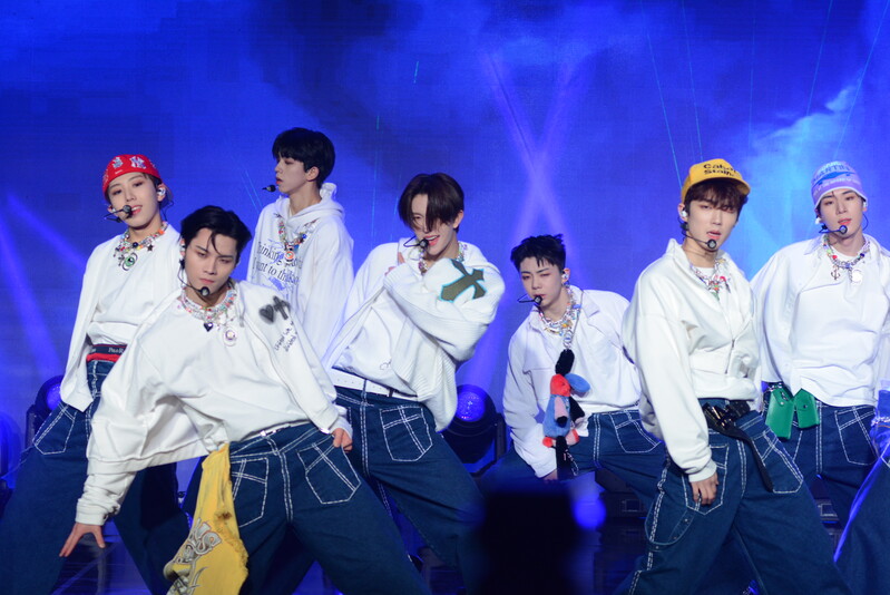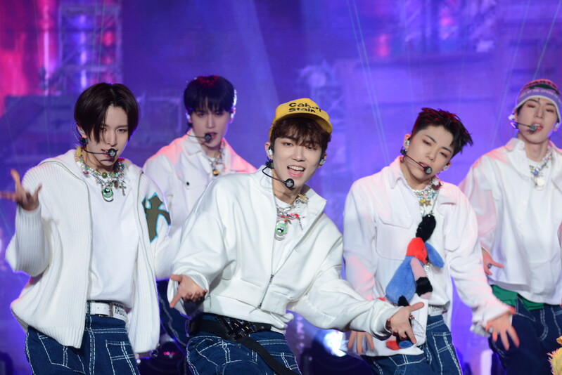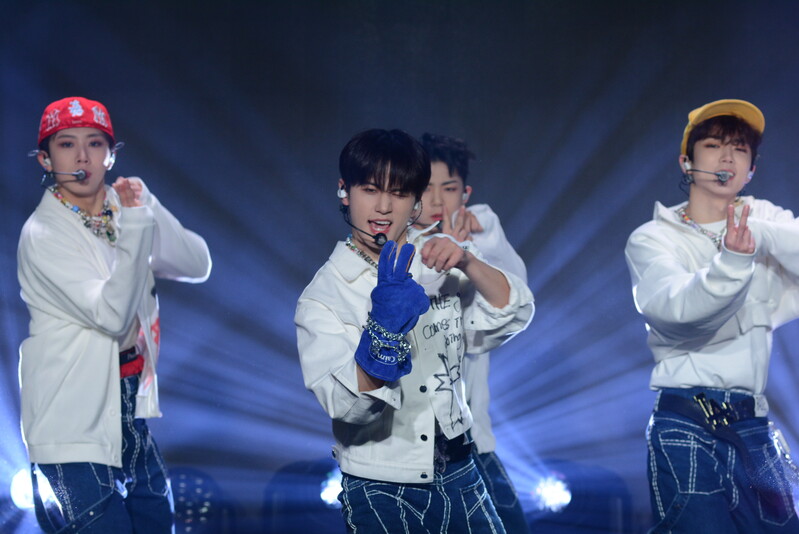 These photos taken during the debut media showcase of the K-pop boy group "8TURN" for group's debut album "8TURNRISE" show members performing their title track "TIC TAC" and one of the songs included within the album "WE."