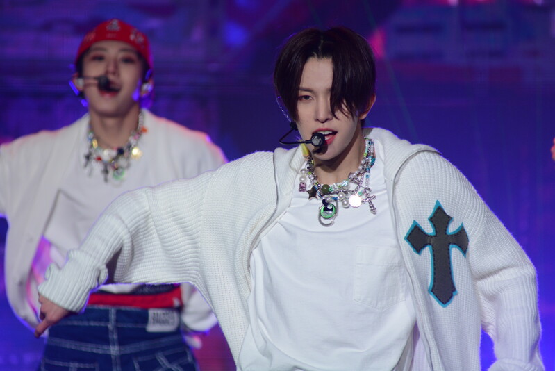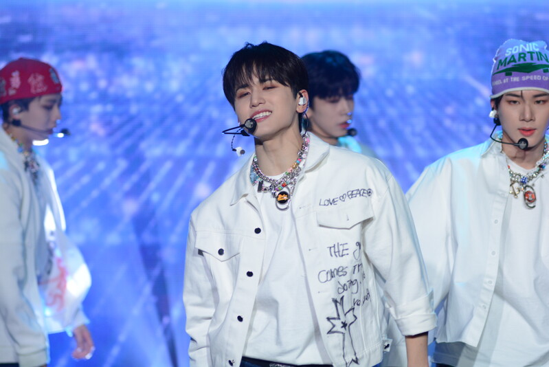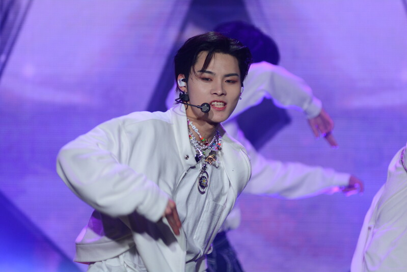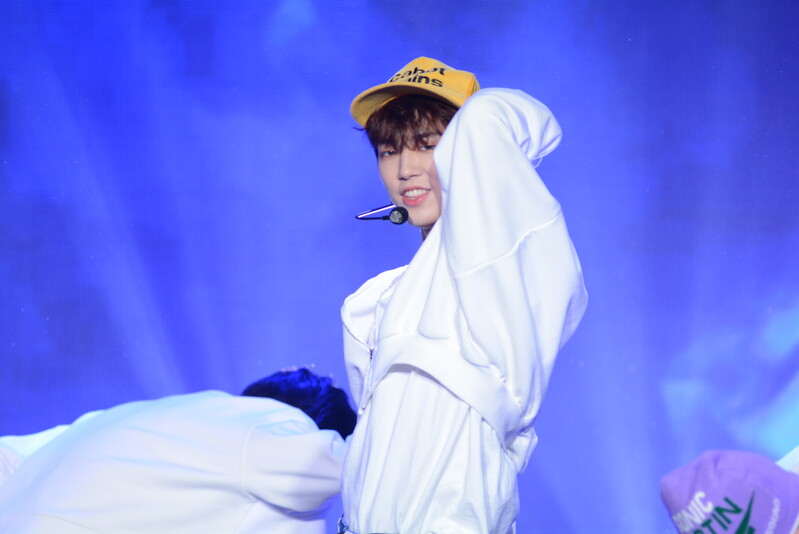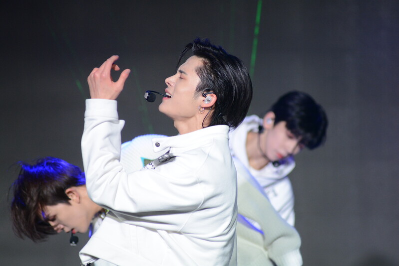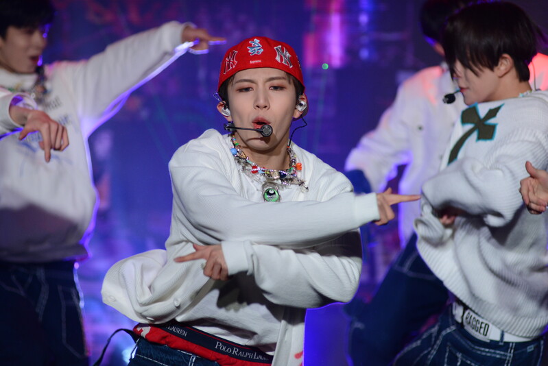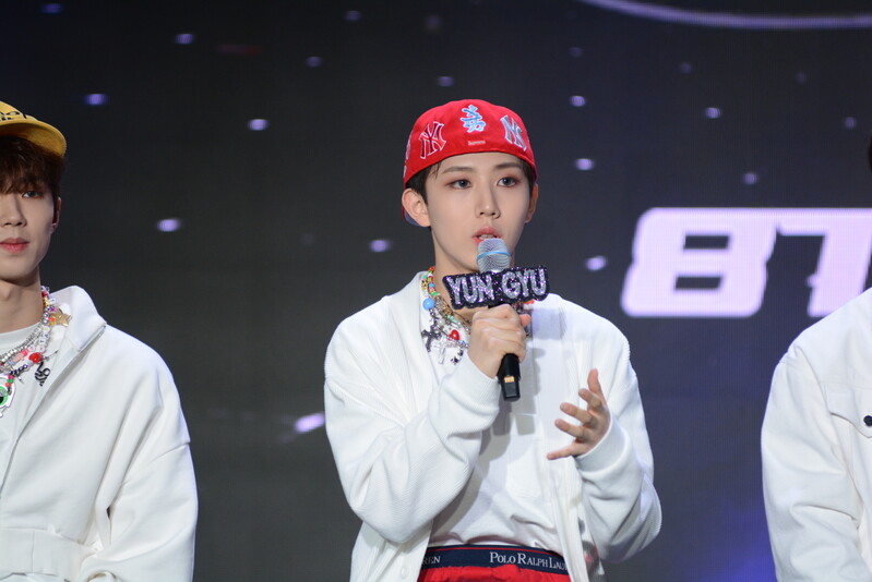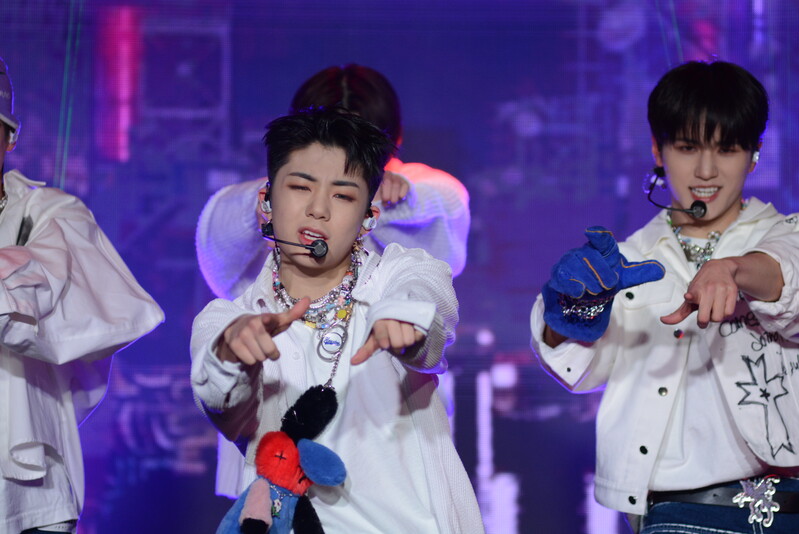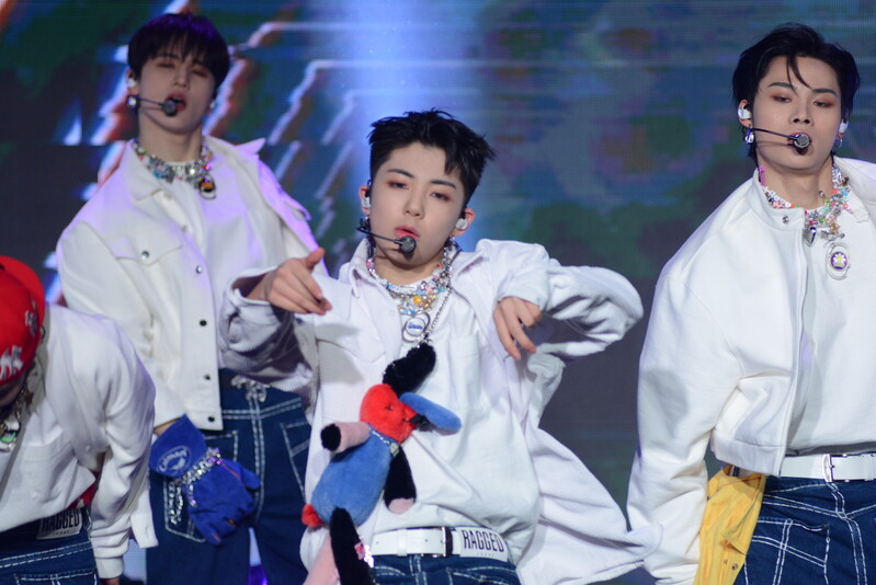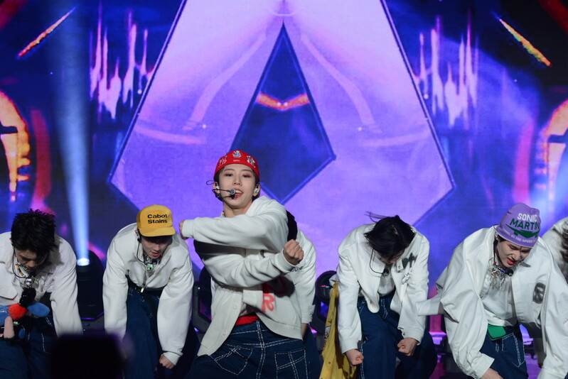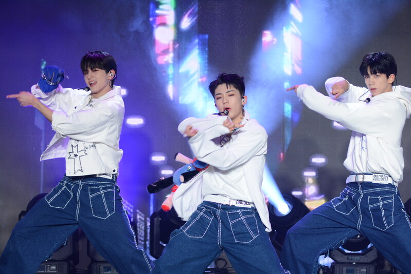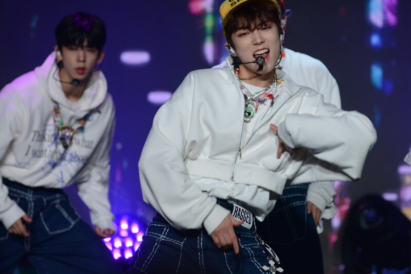 These photos taken during the debut media showcase of the K-pop boy group "8TURN" for group's debut album "8TURNRISE" show members performing their title track "TIC TAC" and one of the songs included within the album "WE."