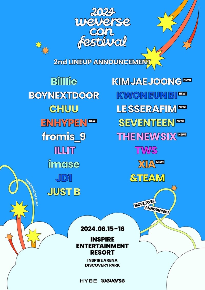 The Weverse Con Festival is HYBE's global music festival, scheduled to take place on June 15-16 at the Inspire Resort on Yeongjong Island in Incheon.