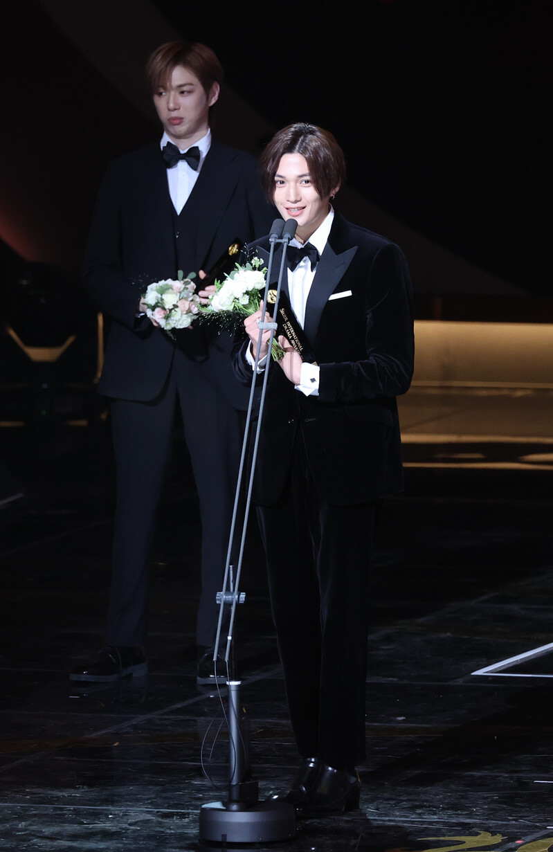 Photo of actor Yusei Yagi giving out his acceptance speech