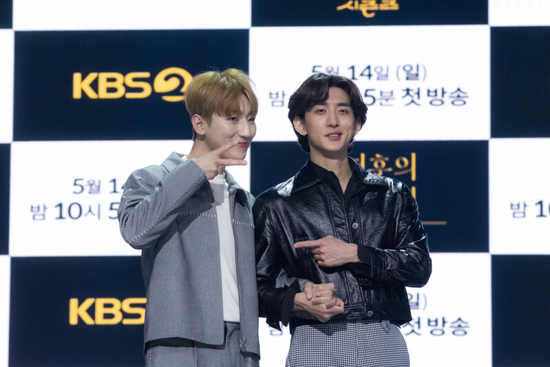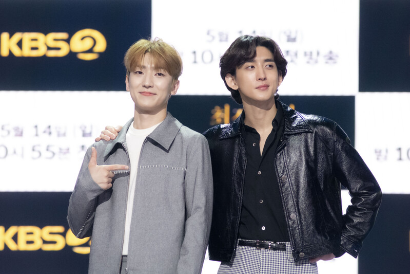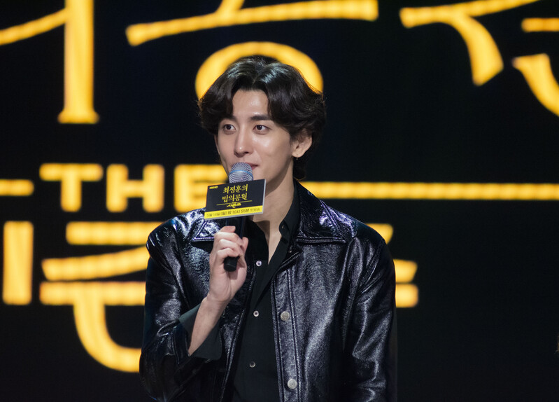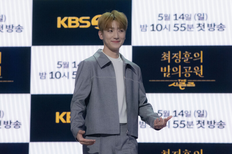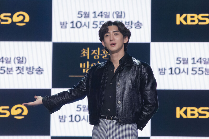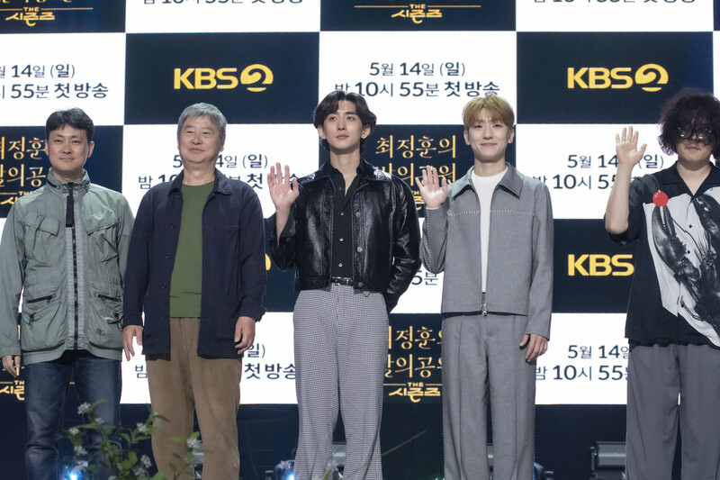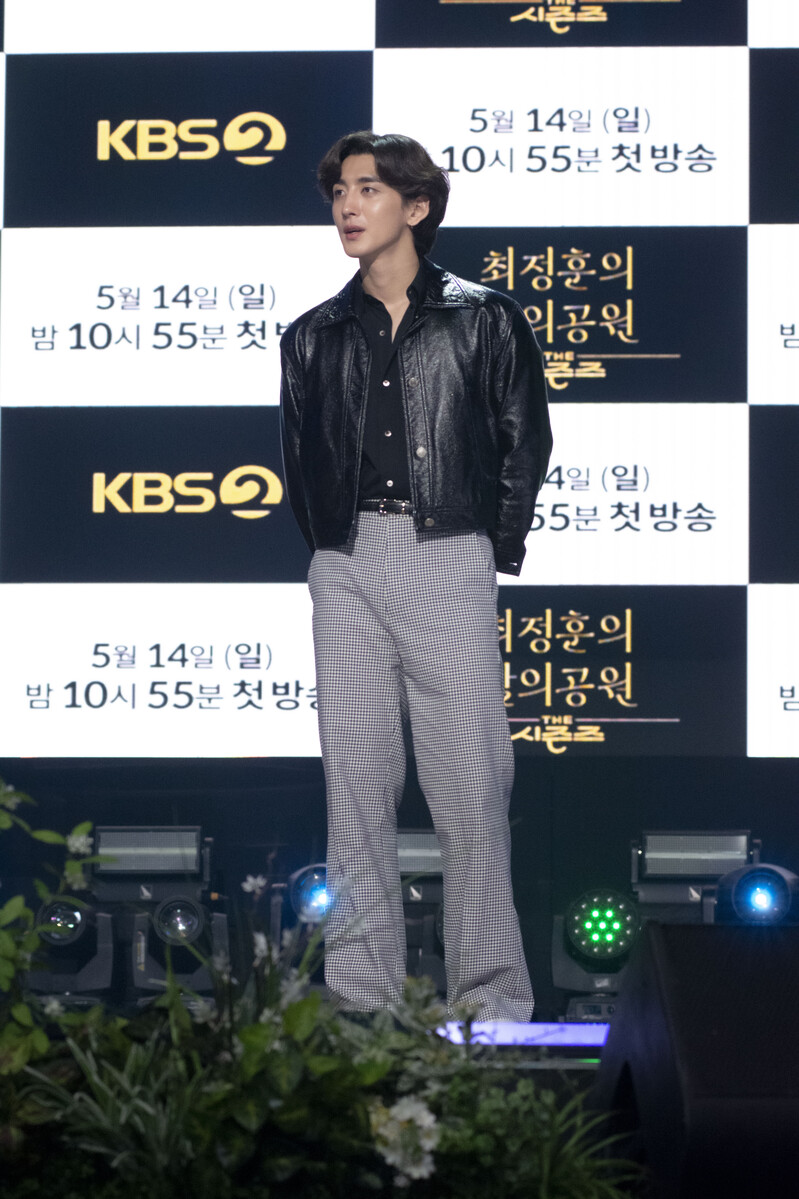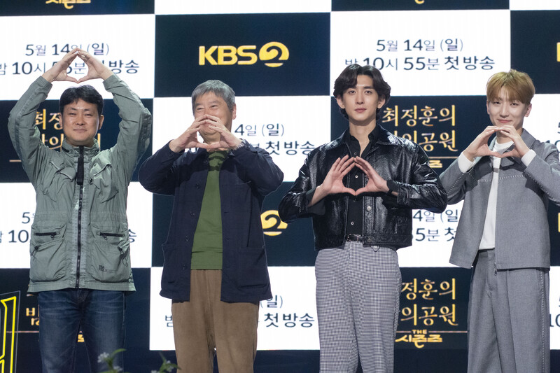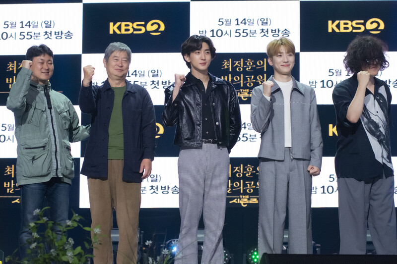 These photos taken during the press conference of the "The Seasons: Choi Jung-hoon's Night Park" show singer Choi Jung-hoon of Jannabi, Jung Dong-hwan of MeloMance and producers of the program.