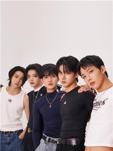 ▲ This photo of 1VERSE, a multinational five-member boy group with two North Korean defector members, Hyuk (far L) and Seok (C), is screenshot from their X posting. (PHOTO NOT FOR SALE) (Yonhap) |