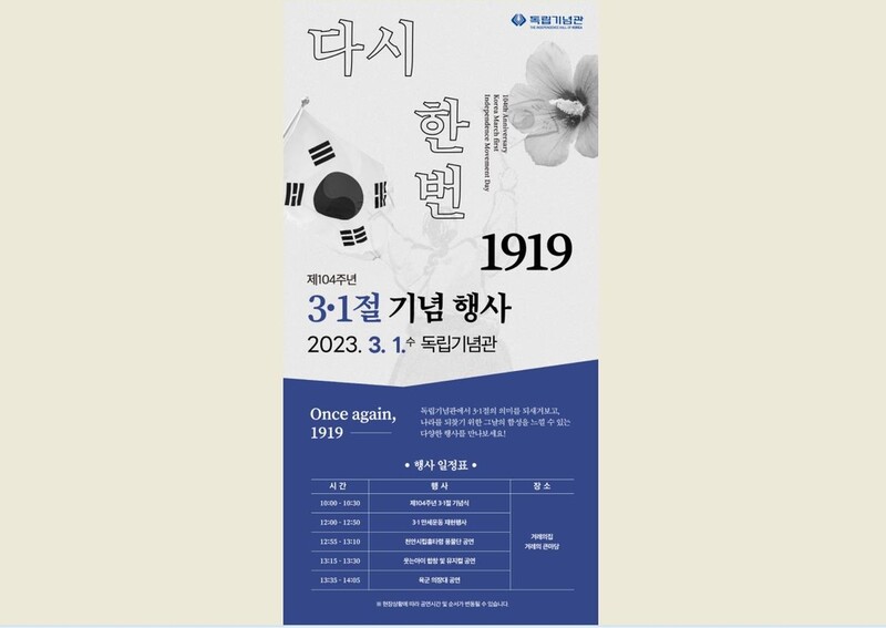 Han Si-joon, head of the Independence Hall of Korea, said, "I hope that the commemorative event that the people participate and create together will be a meaningful opportunity to reflect on the historical meaning of the Korea March 1st Independence Movement."
