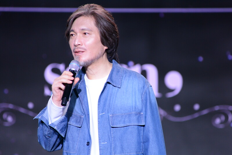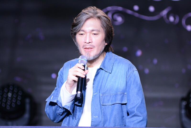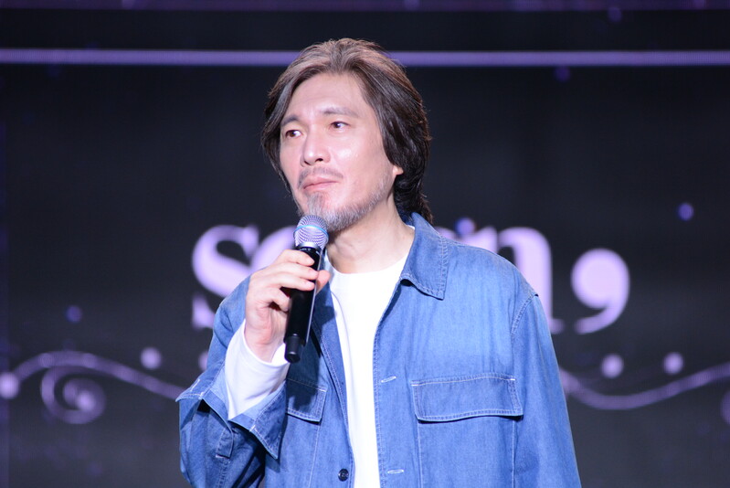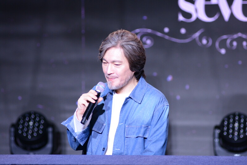 These photos taken during the media showcase of South Korean singer Yim Jae-beum's upcoming seventh full length album "SEVEN," shows the singer.