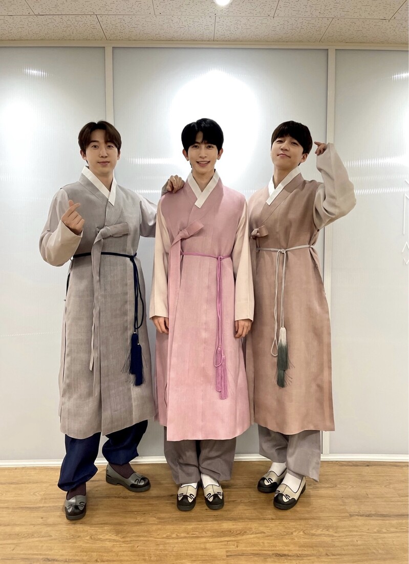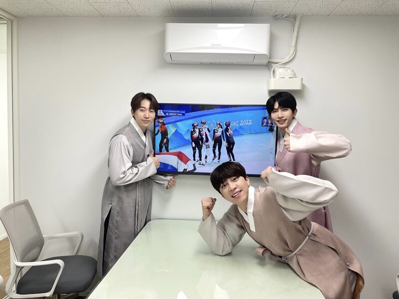 U-Kiss (Soo-hyun·Ki-seop·Hoon) posted an encouragement message on its official social media on Feb. 14, along with a photo of wearing hanbok and watching the 2022 Beijing Winter Olympics. These photos, provided by Tango Music, show the three members.