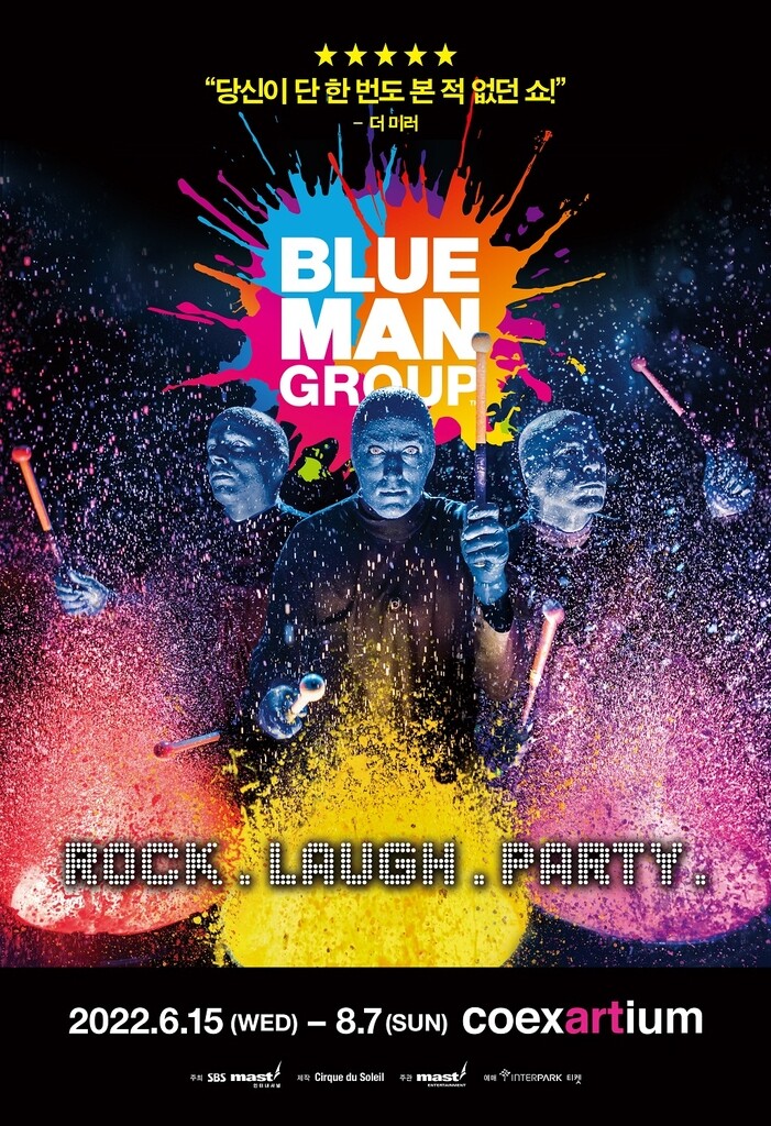 Performance production company Mast Entertainment announced on Monday that the Blue Man Group performance by three artists dressed in blue will be held at COEX Artium in Gangnam-gu, Seoul from June 15 to August 7.