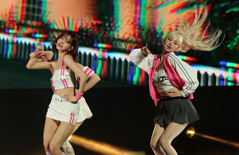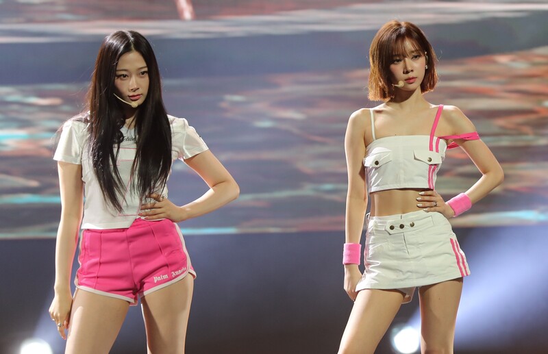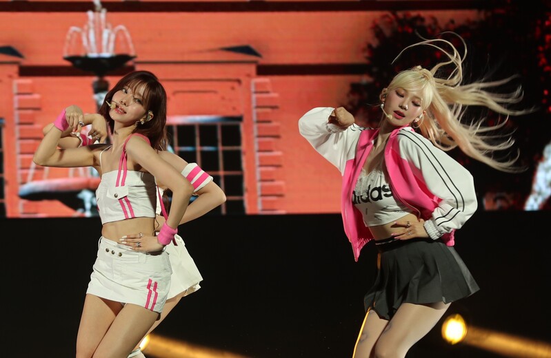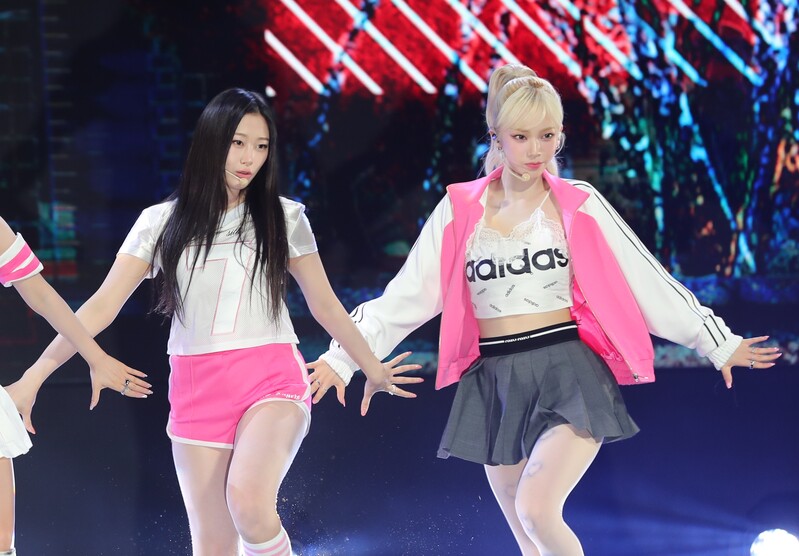 These are the photos of aespa performing the title track "Spicy," during the media showcase for their 3rd mini album "MY WORLD."
