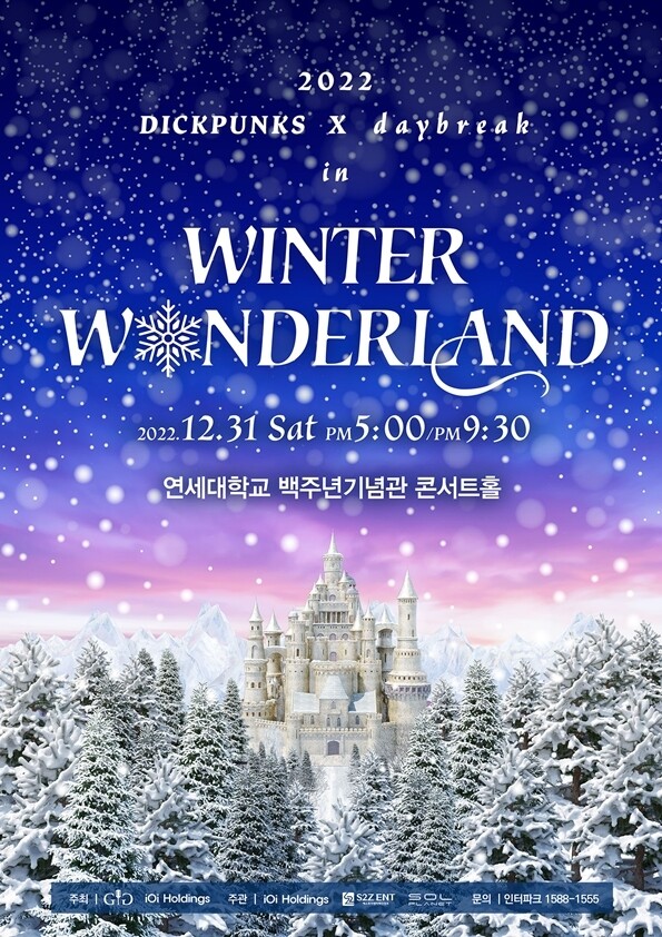 SEOUL December 21 (Yonhap) -- South Korean band Dickpunks and Daybreak will be hosting “Dickpunks X daybreak in Winter Wonderland” at the Yonsei University Sinchon Cmpus Centennial Concert hall on December 31.