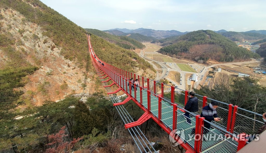 관광객들은 낮 기온이 13도까지 오른 포근한 날씨 속에 남북으로 길게 뻗은 출렁다리를 오가며 즐거운 한때를 보냈다.