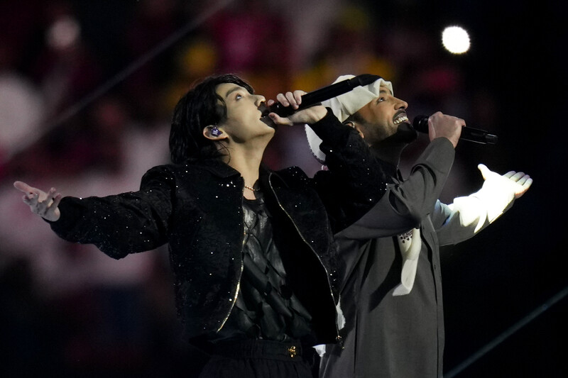 | ▲This photo shows Jungkook singing 'Dreamers' at Qatar World Cup. (Yonhap) |