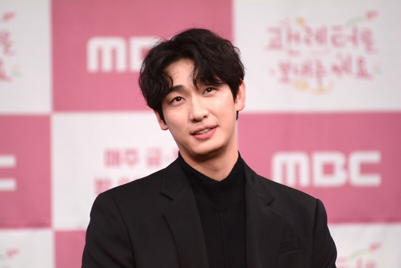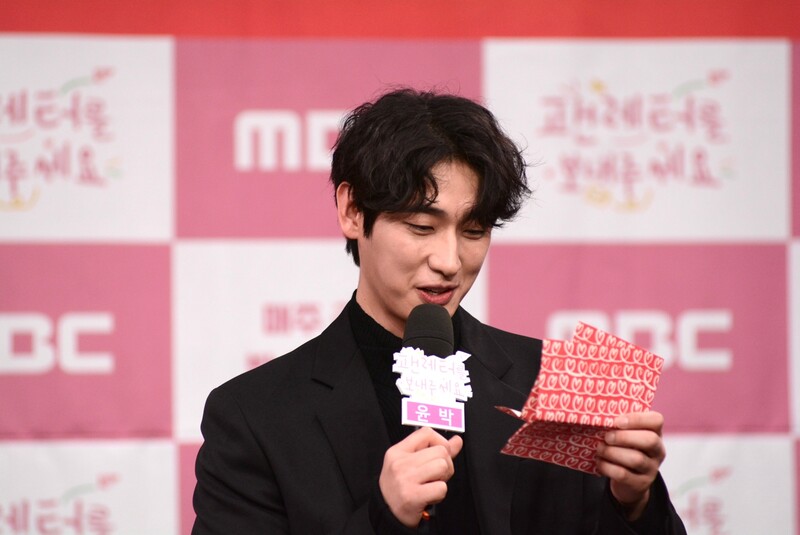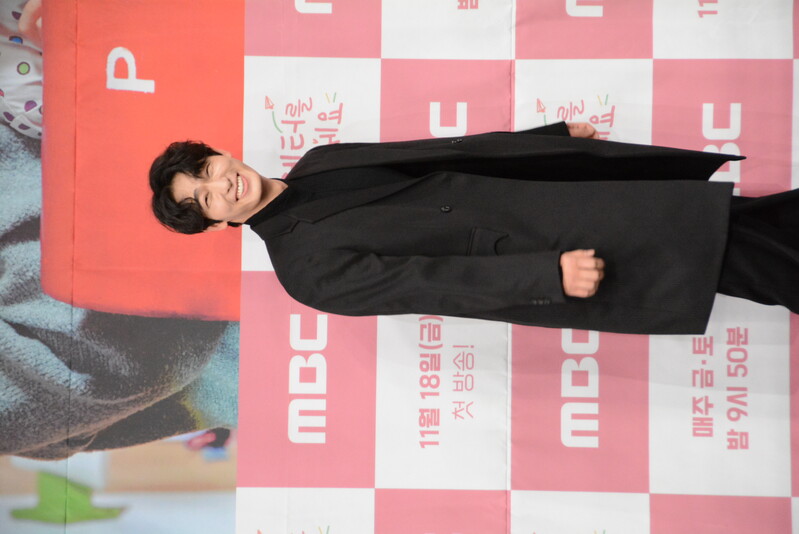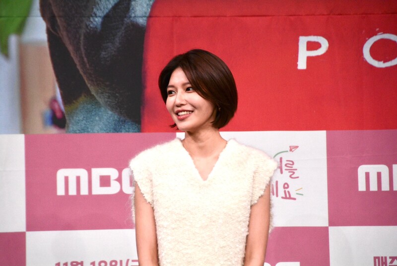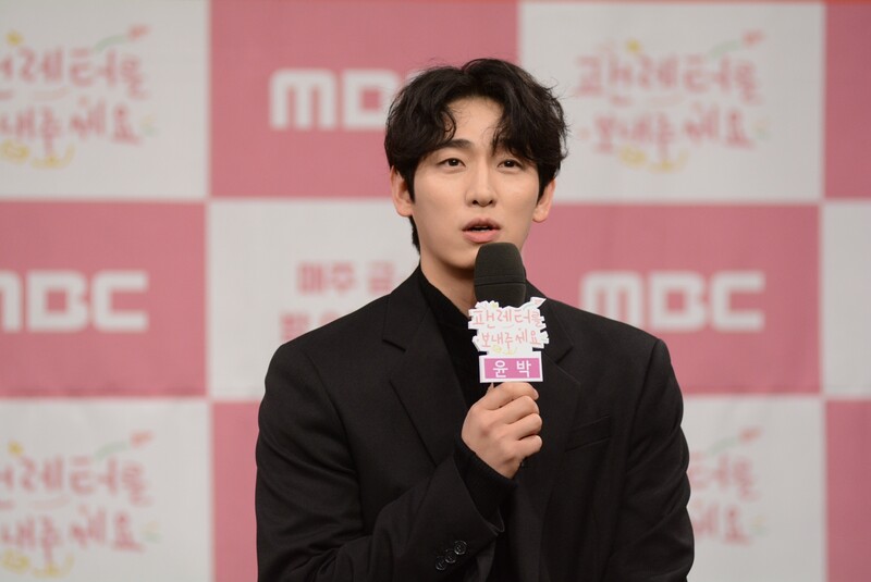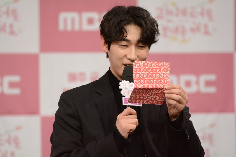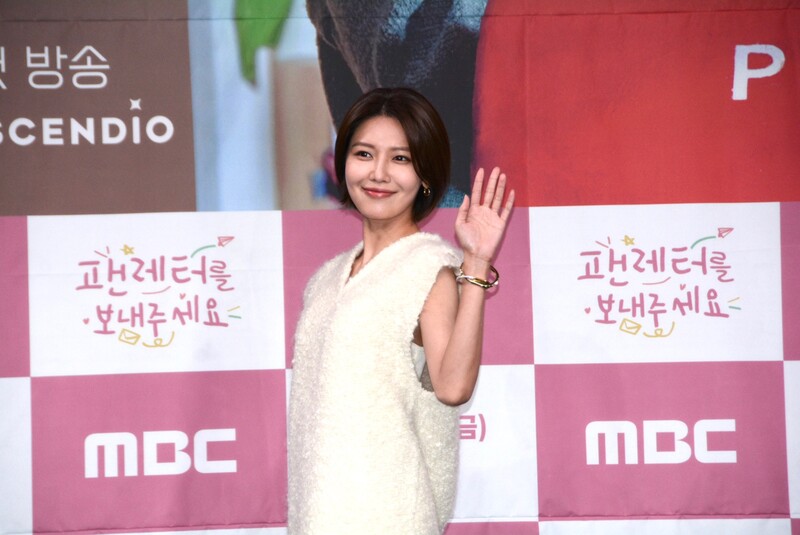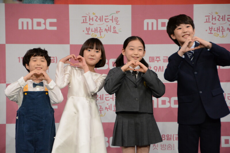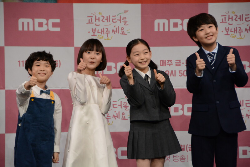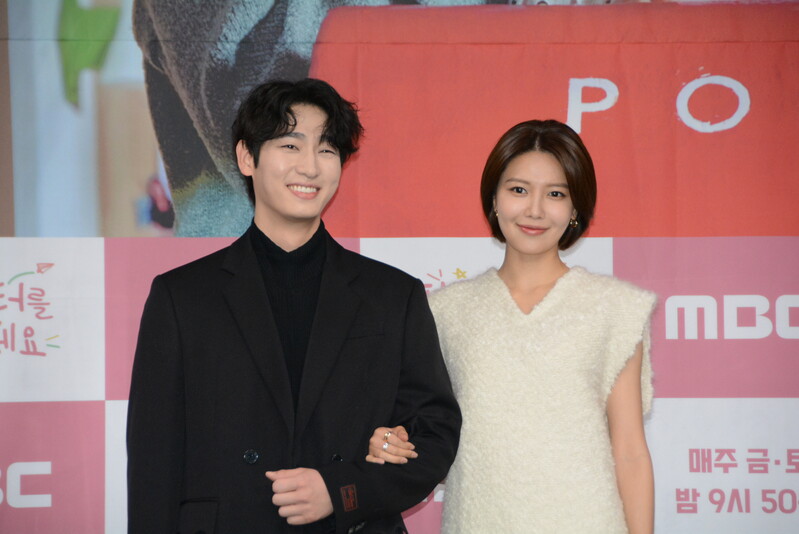 These photos taken during the press conference of the upcoming S.Korean drama "Fanletter Please" show actress Choi Soo-young and Yoon Park.
