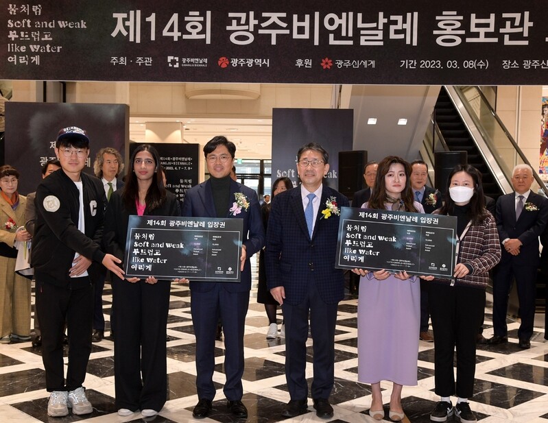| ▲This photo, provided by the Gwangju City Government show the opening ceremony of promotional space for Gwangju Biennale at Shinsegae Department Store in Gwangju. (PHOTO NOT FOR SALE) (Yonhap) |
