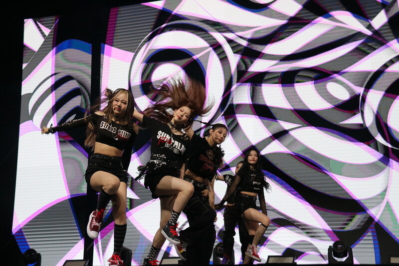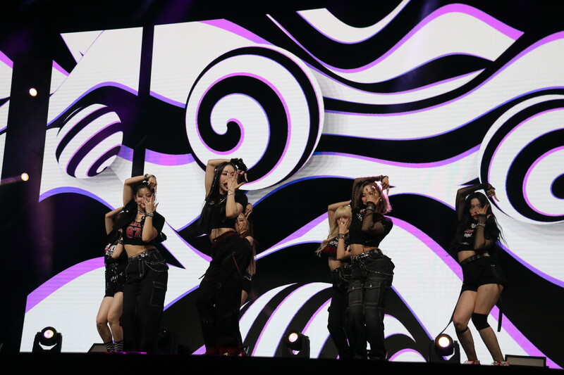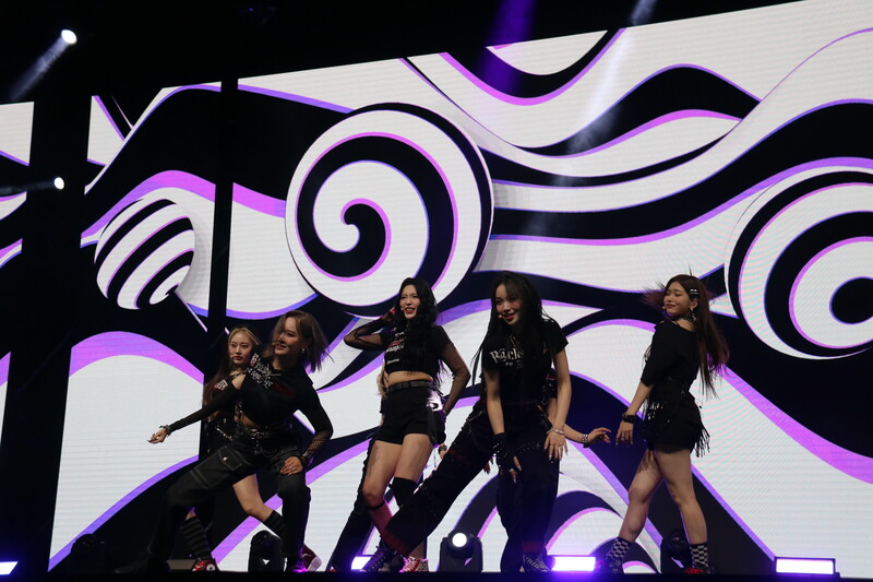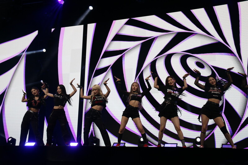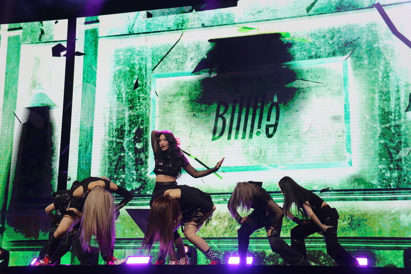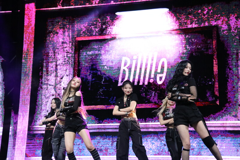 These photos, taken during the media showcase of girl group Billlie's upcoming third mini album "the Billage of perception: chapter 2" show members performing their title track "Ring ma Bell (What a wonderful world)."