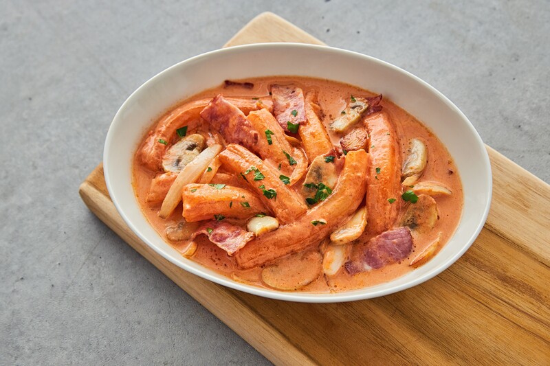 Making of the Korean rosé tteokbokki is a little tricky. The rosé sauce used in Korean-style rosé tteokbokki is a mixture of gochujang and cream sauce, and not the traditional Italian tomato-and-cream sauce. This modification is tailored to suit the taste of Koreans who enjoy spicy flavors, and due to this modification, Korean-style rosé sauce is spicier than the original rosé sauce.