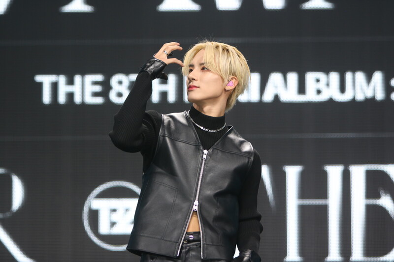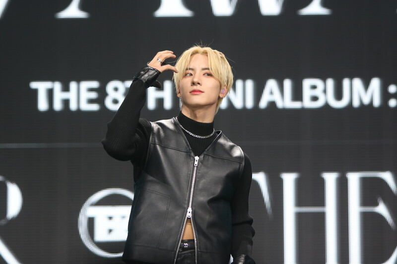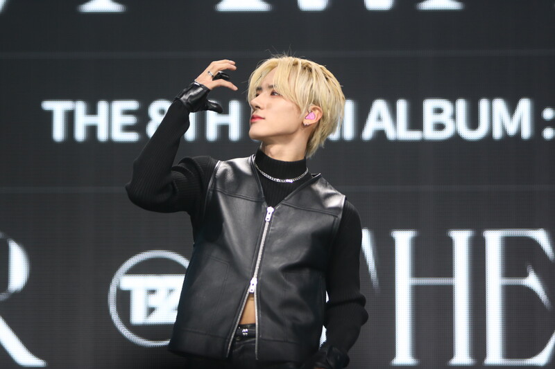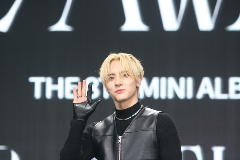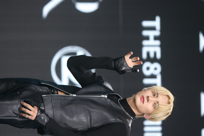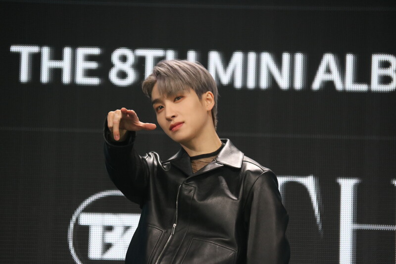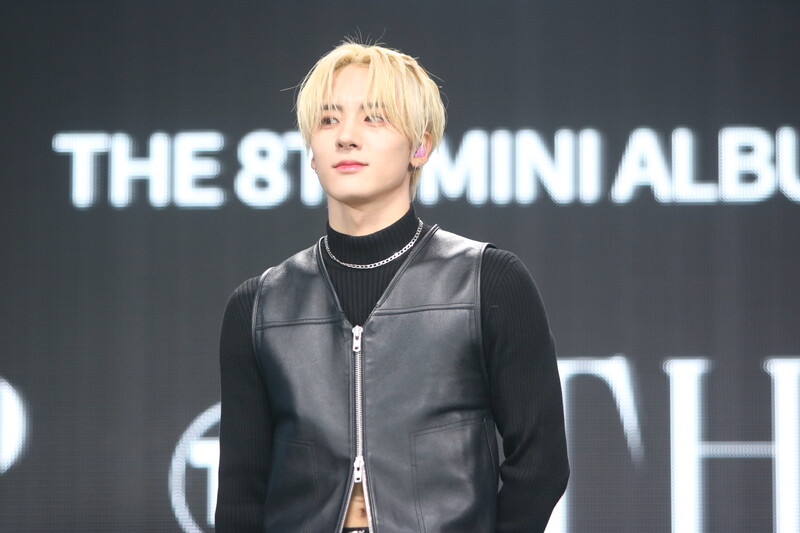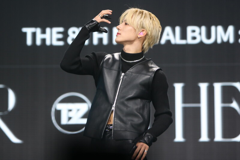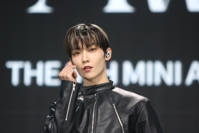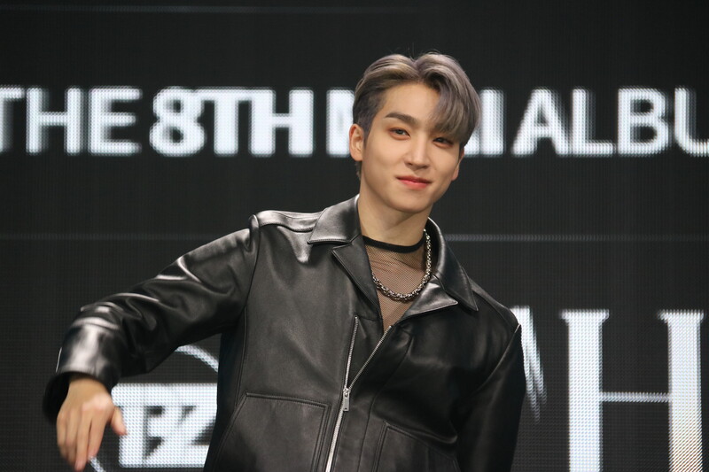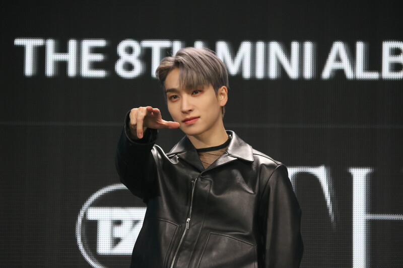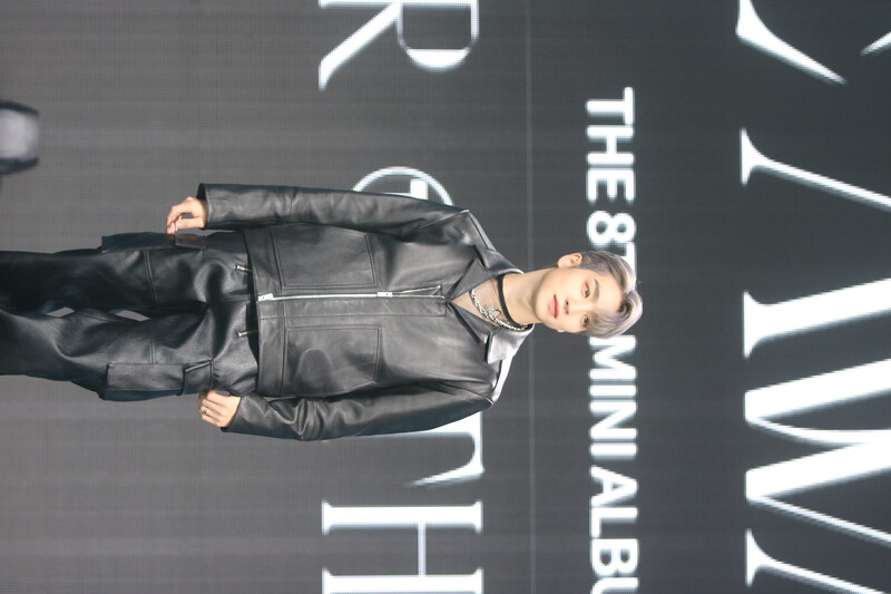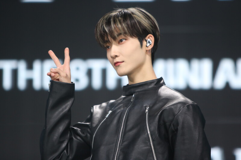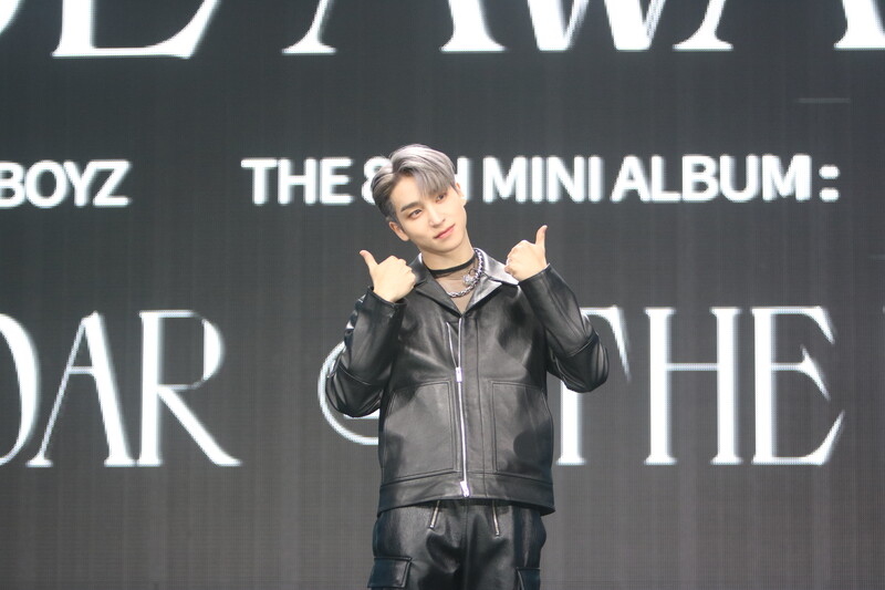 These are the photos of THE BOYZ's Sangyeon, Eric, and Kevin during the media showcase for their 8th mini album "BE AWAKE."