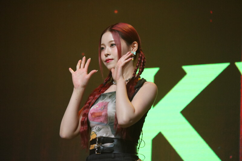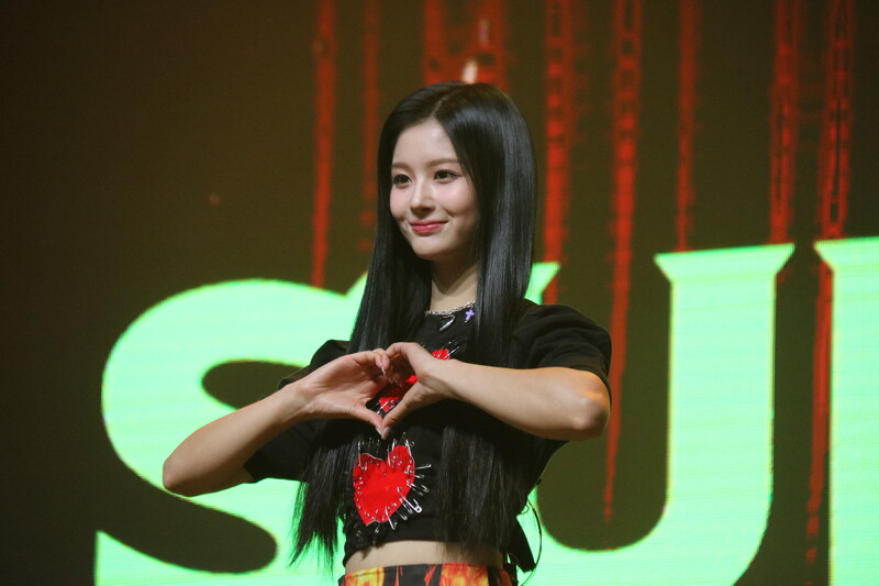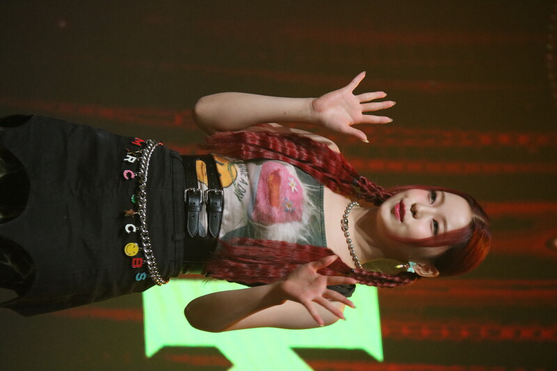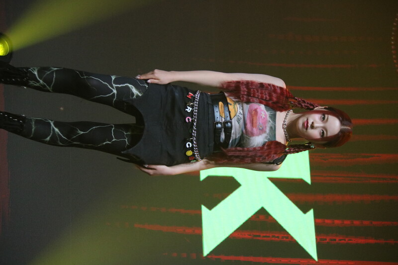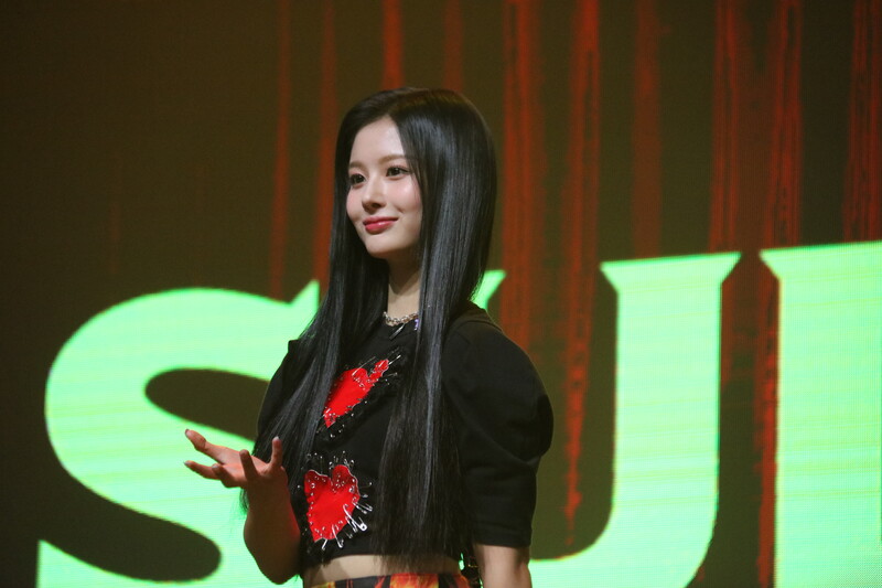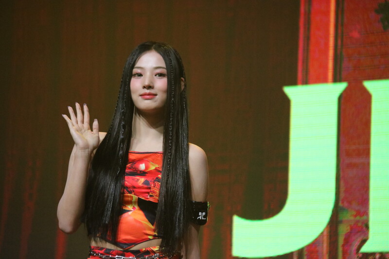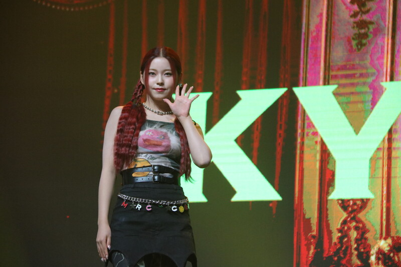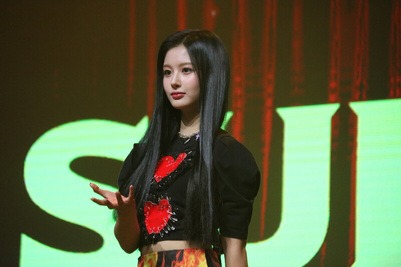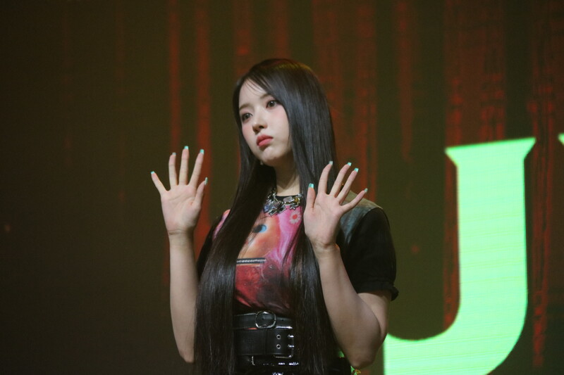 These photos, taken during the media showcase of NMIXX's for their upcoming second single album "ENTWURF" shows, Lily, Haewon, Jinni, Sullyoon, Kyujin, Jiwoo, and Bae.
