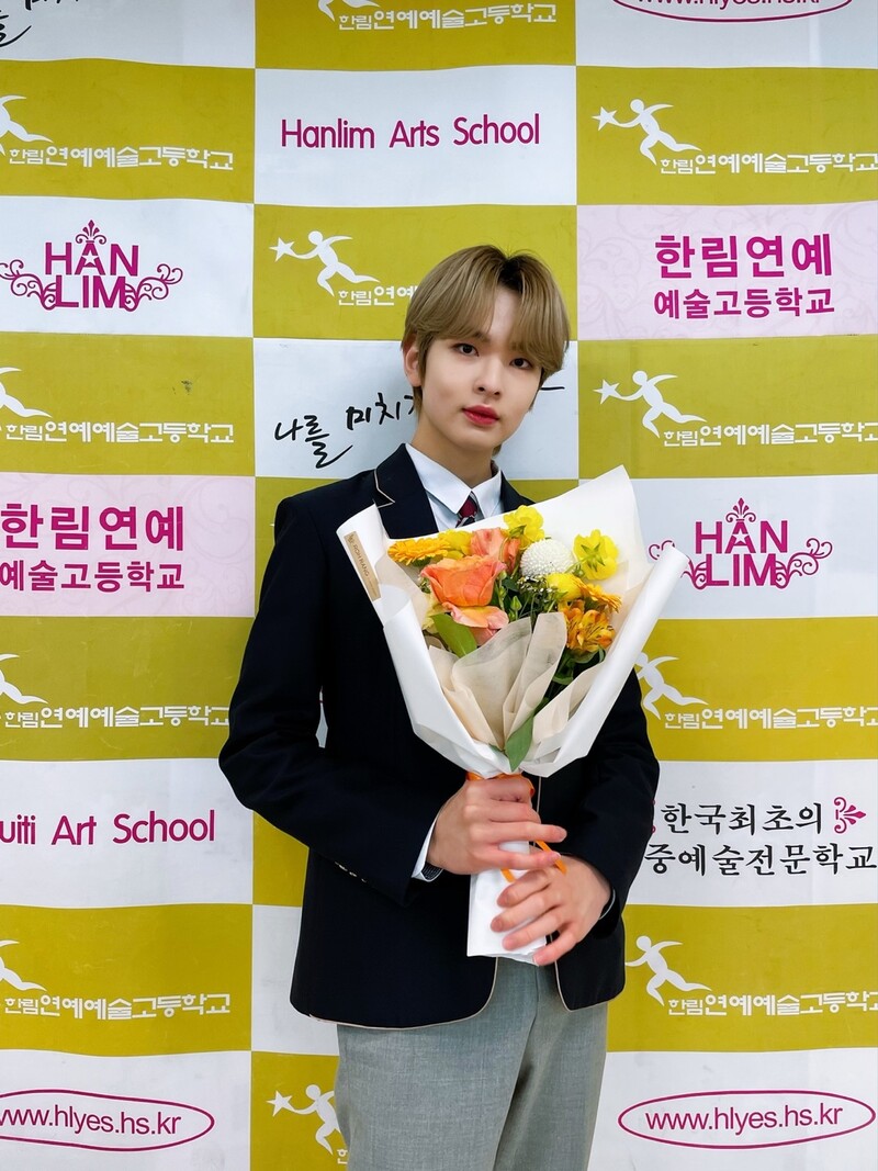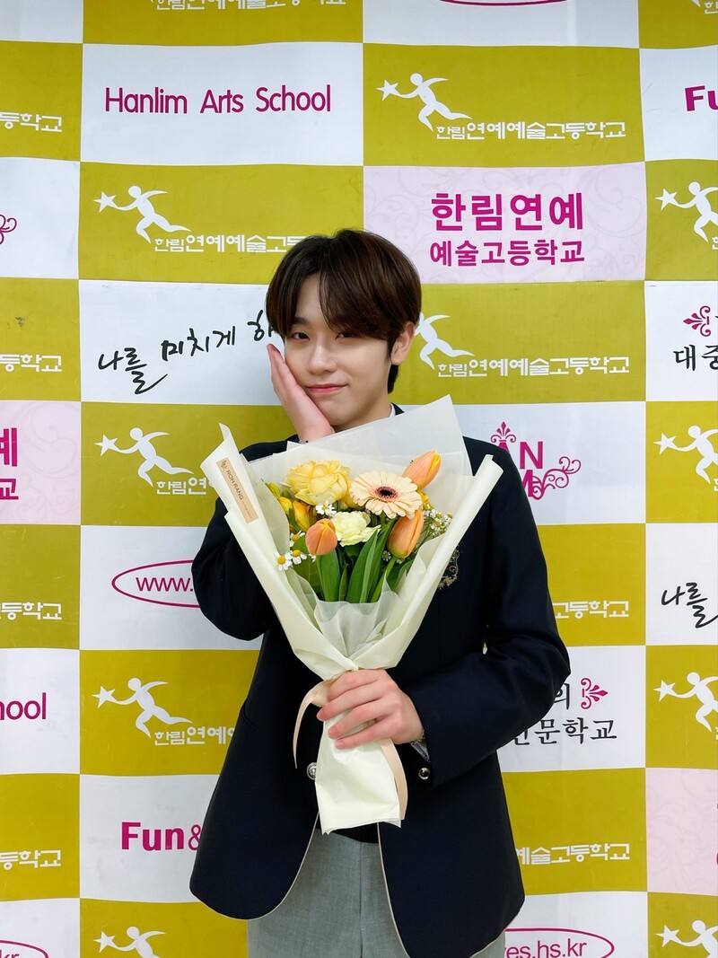 These photos, provided by C9 Entertainment, show K-pop boy group EPEX’s Keum Dong-hyun and MU, who have graduated from Hanlim Arts High School, located in Songpa-gu, Seoul, on Feb. 11.