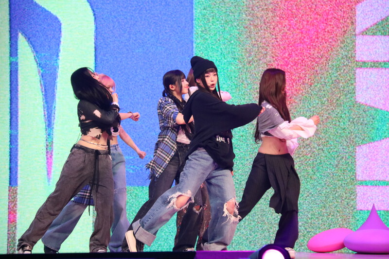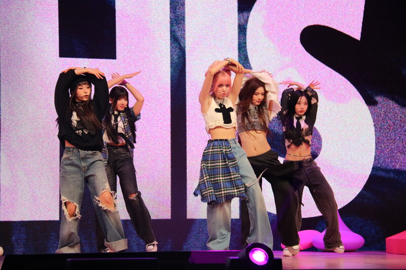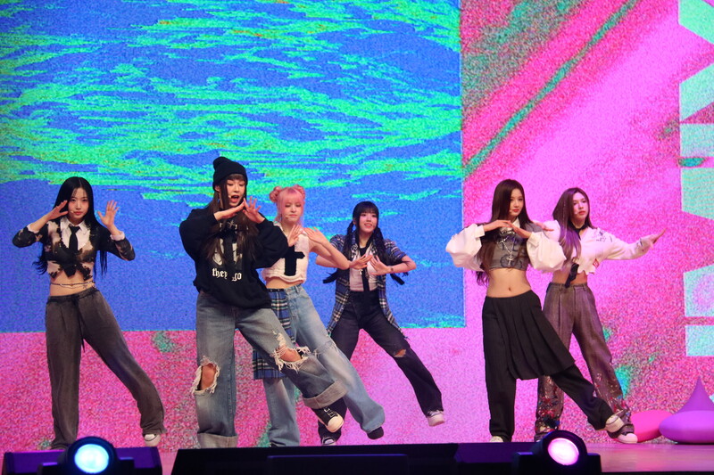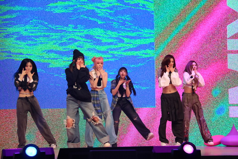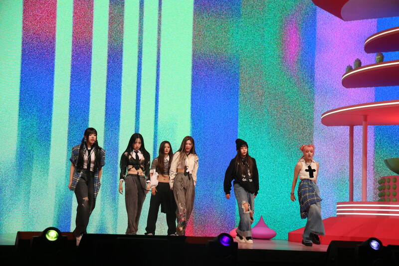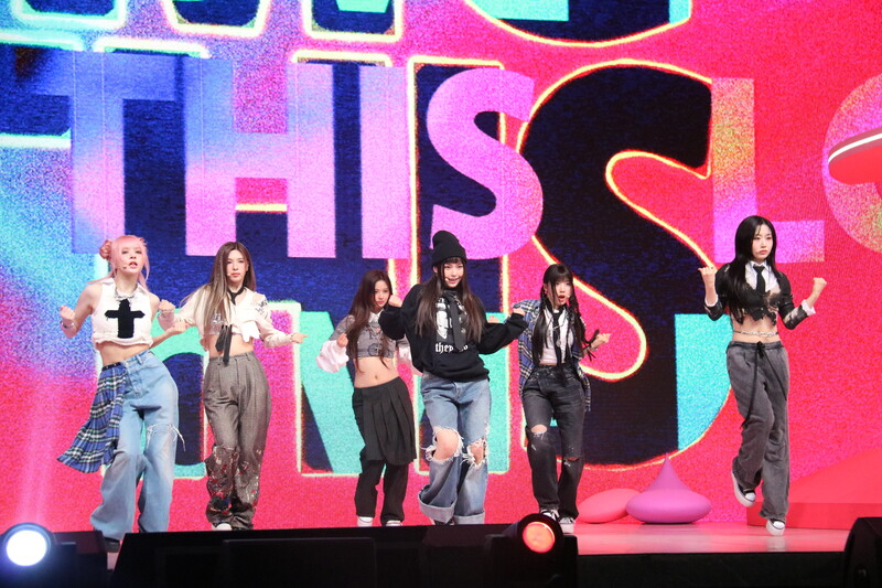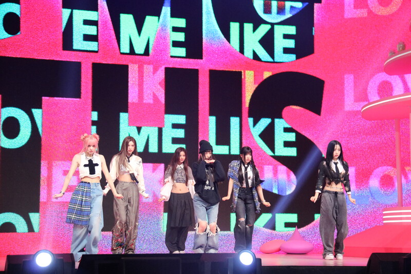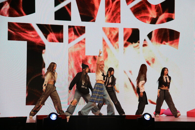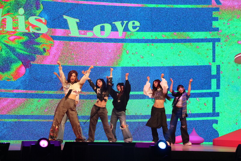 the media showcase of NMIXX’s first mini album “Expergo” show members