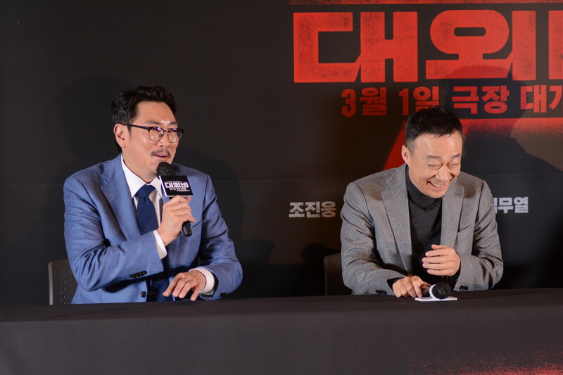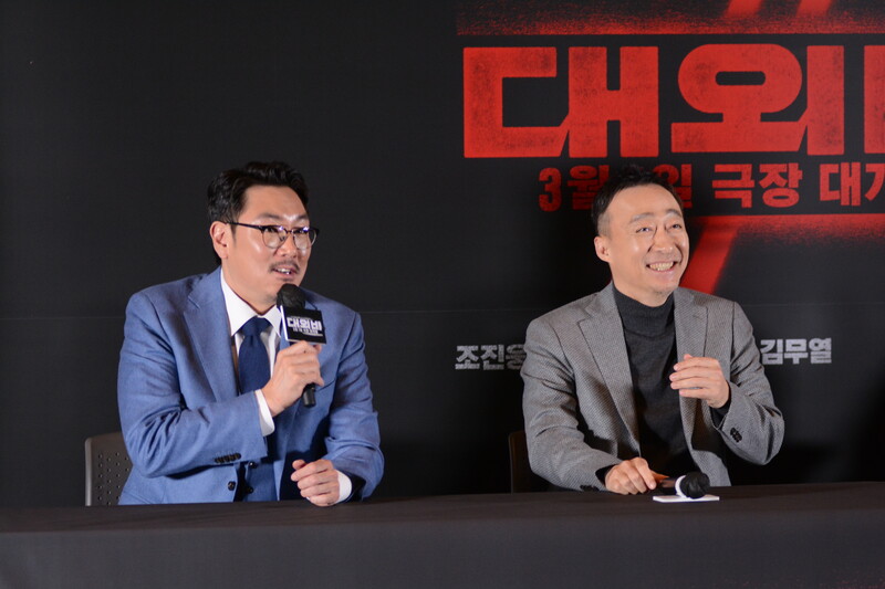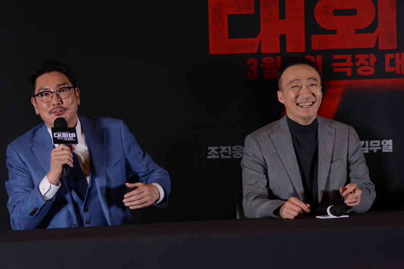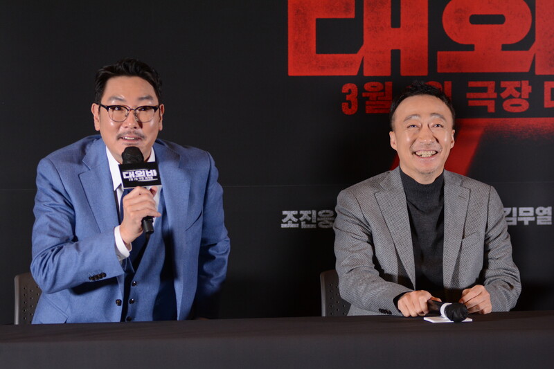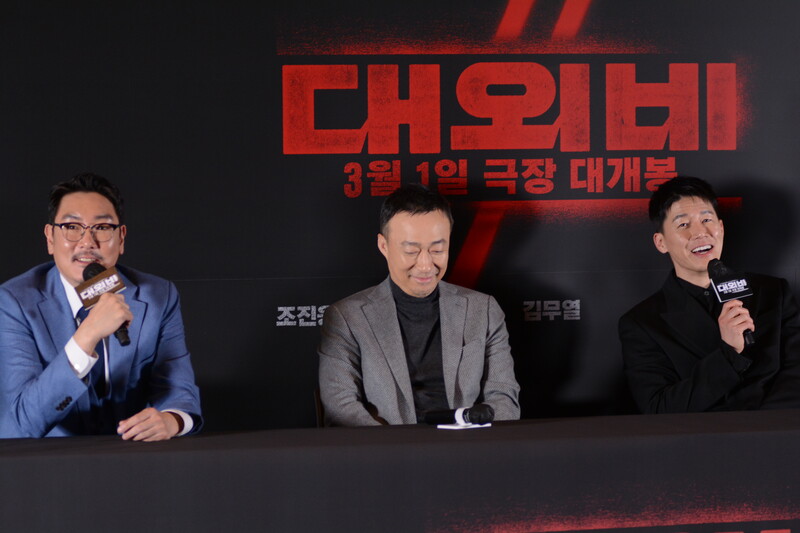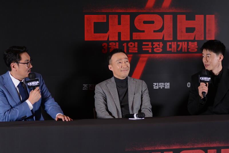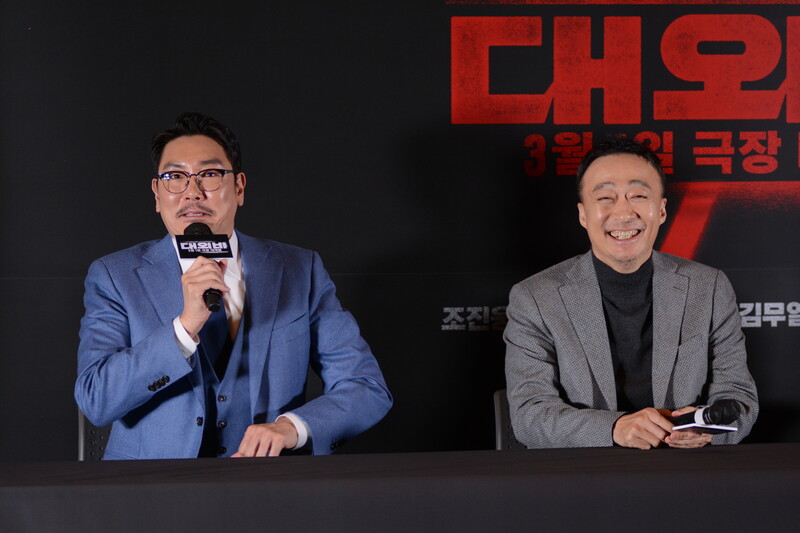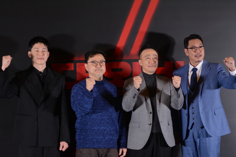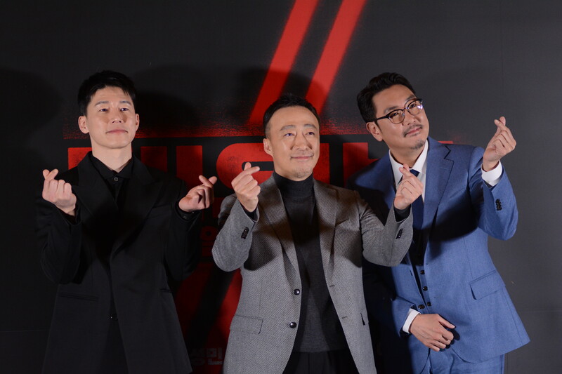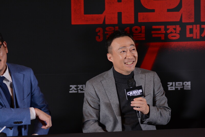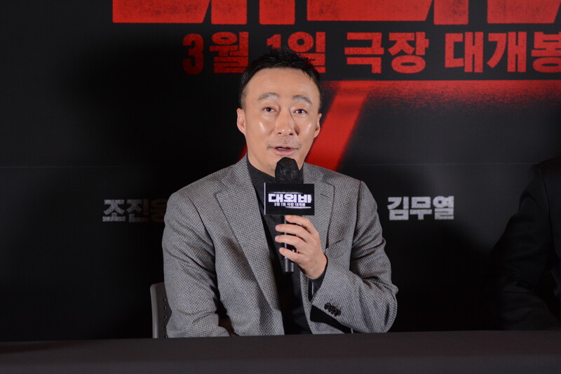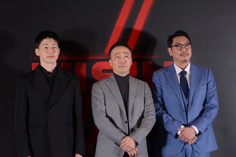 These photos, taken during the press conference of the upcoming South Korean moive "The Devil's Deal" show actror Lee Sung-min, Cho Jin-woong, Kim Mu-yeol and director Lee Won-tae posing for their individual, group photos and answering questions.