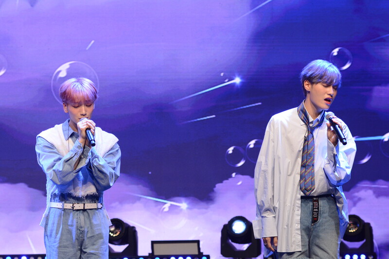 These photos, taken during the media showcase of K-pop boy group LUMINOUS for their upcoming first full length album "LUMINOUS in Wonderland" shows individual and group photos of members performing title track "Engine" and "Far" from the album.