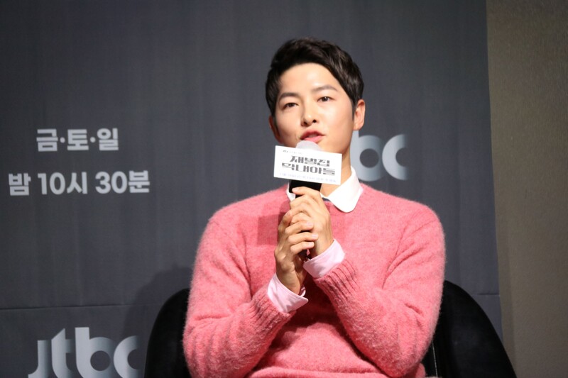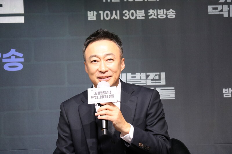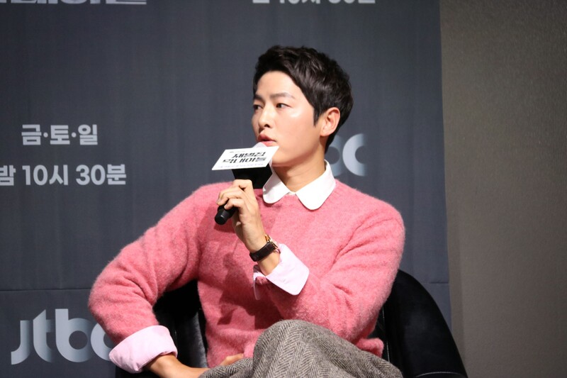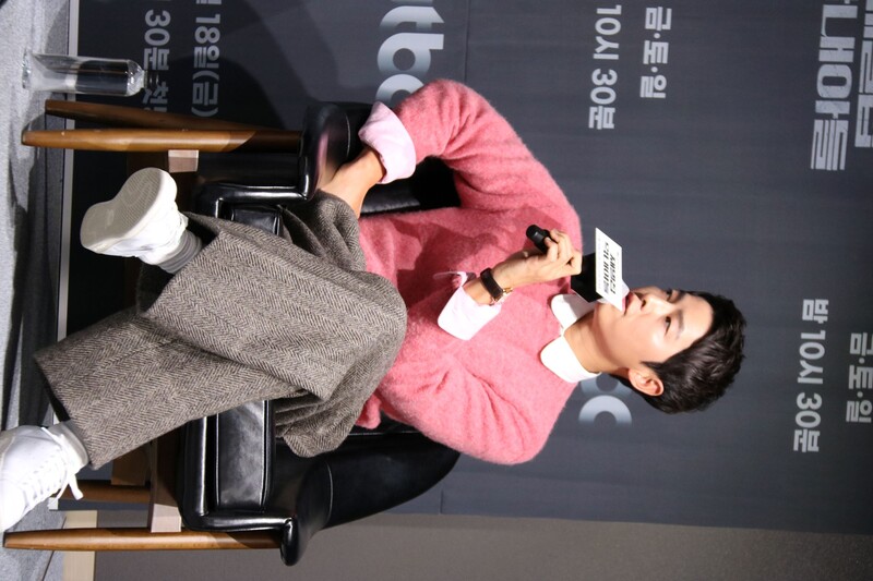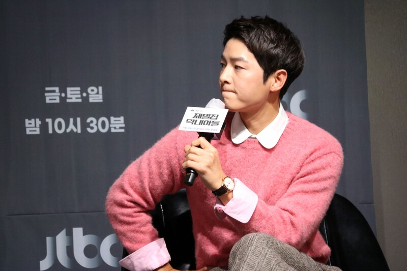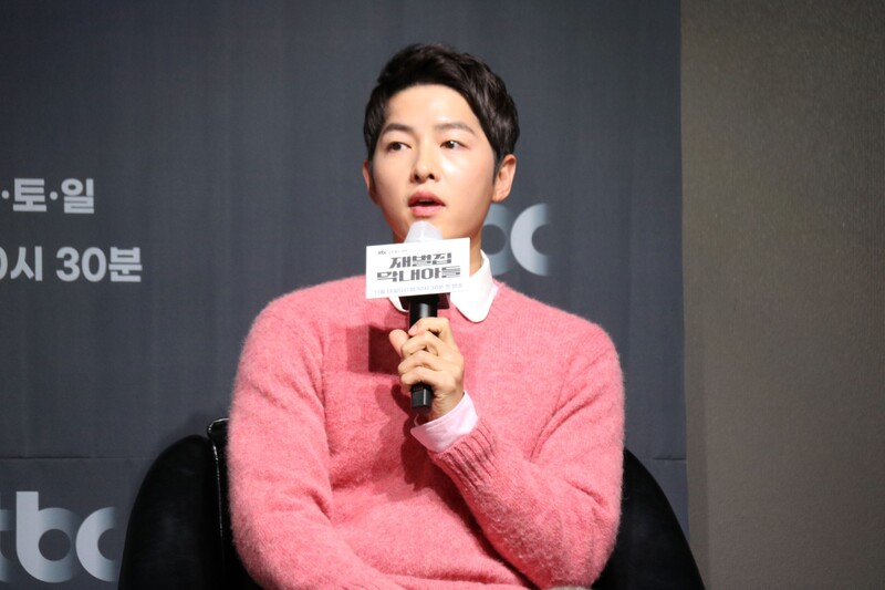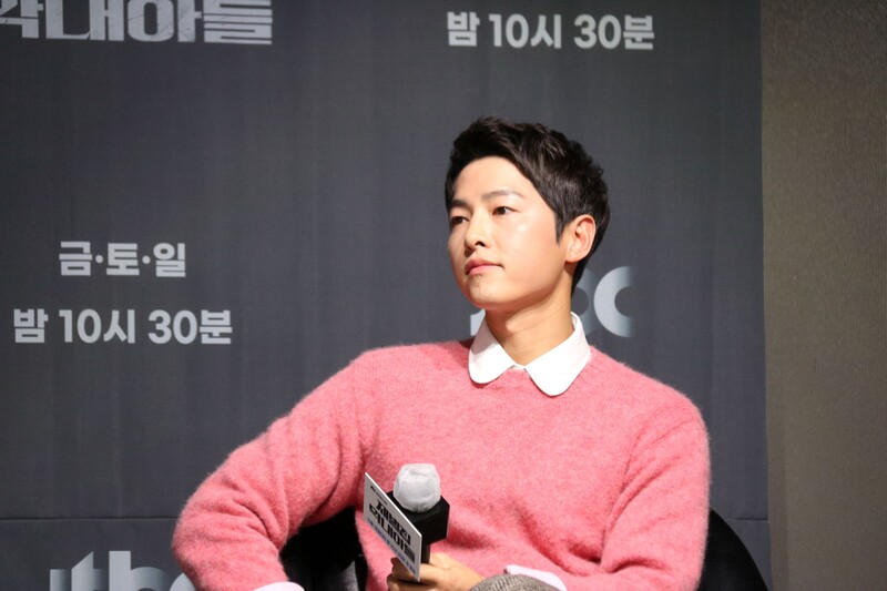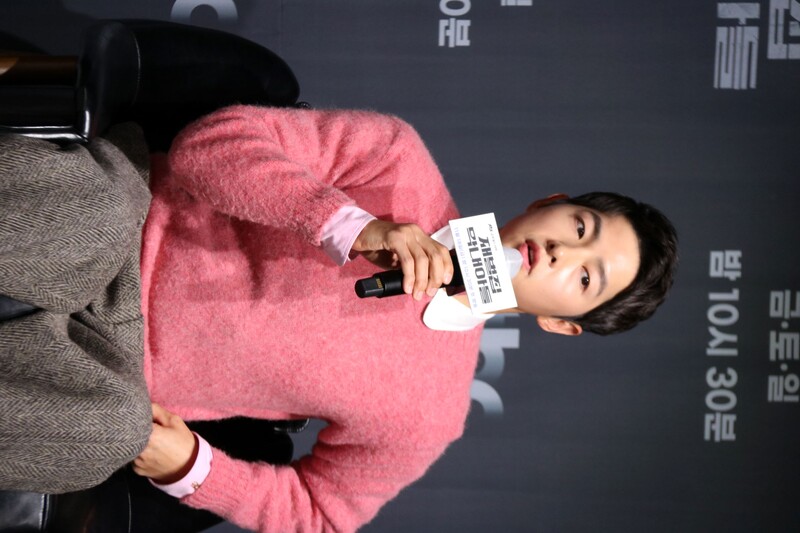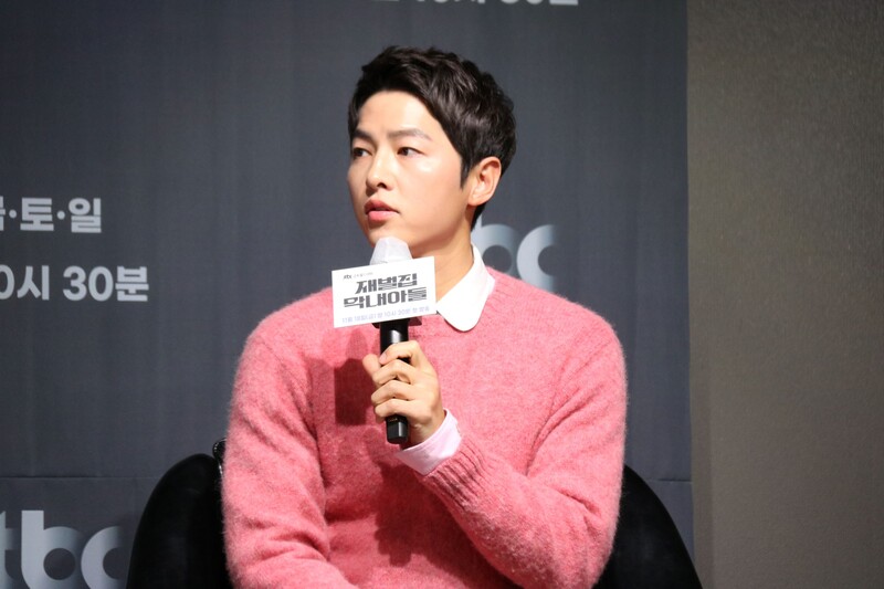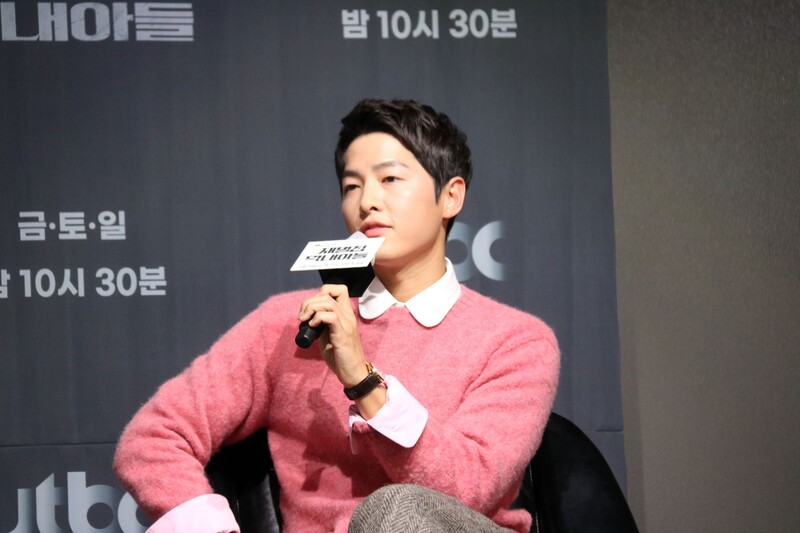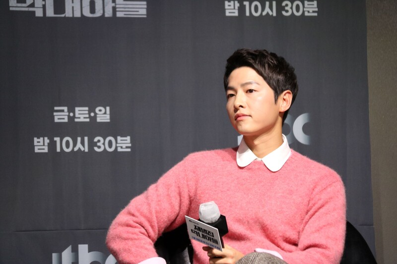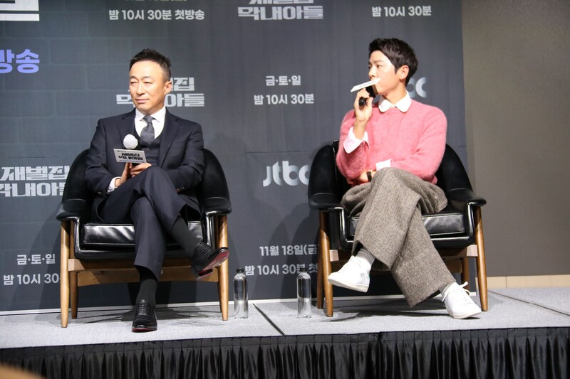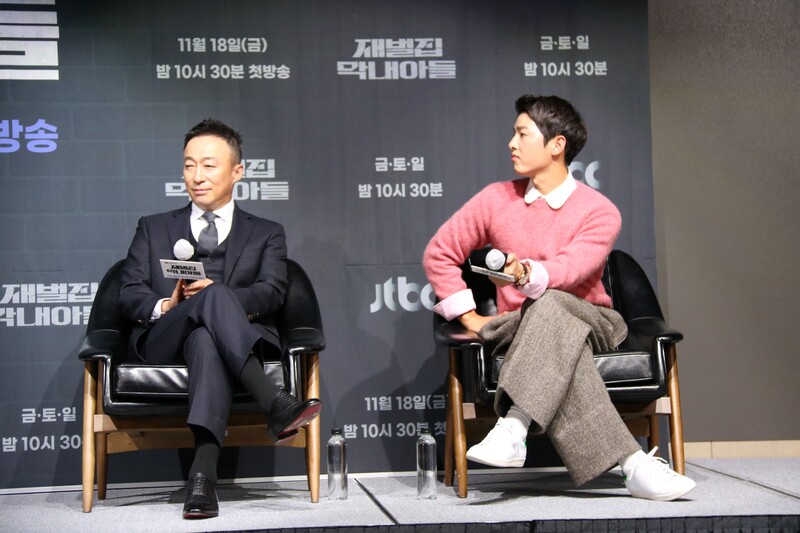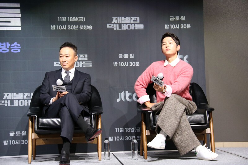 These photos show actors Song Joongki, Shin Hyunbeen and Lee Sungmin answering questions at press conference of drama 'The Youngest Son of a Conglomerate,' which took place on Thursday.