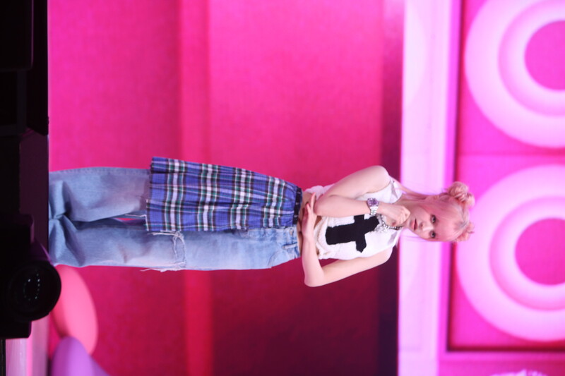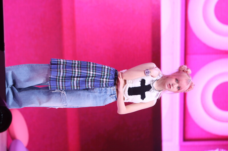 These photos, taken during the media showcase of NMIXX’s first mini album “Expergo” show individual photos of the members Kyujin, Haewon, and Lily.