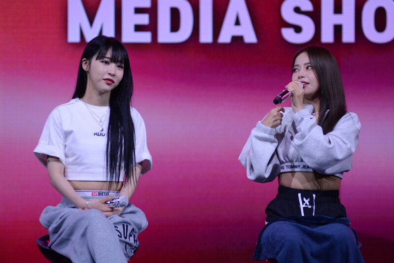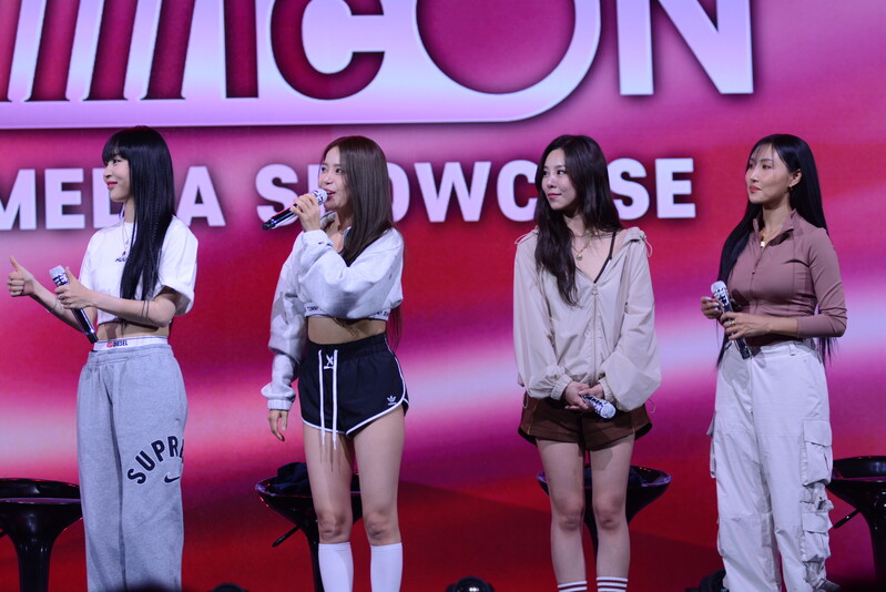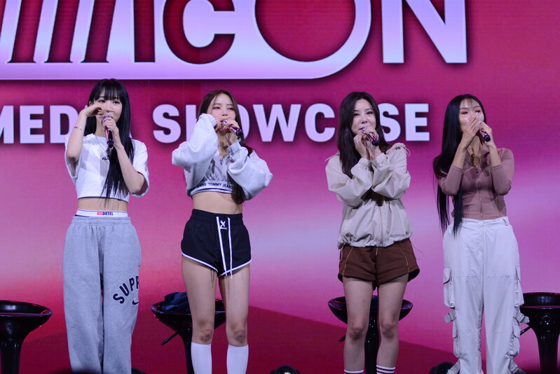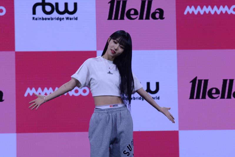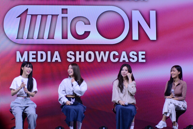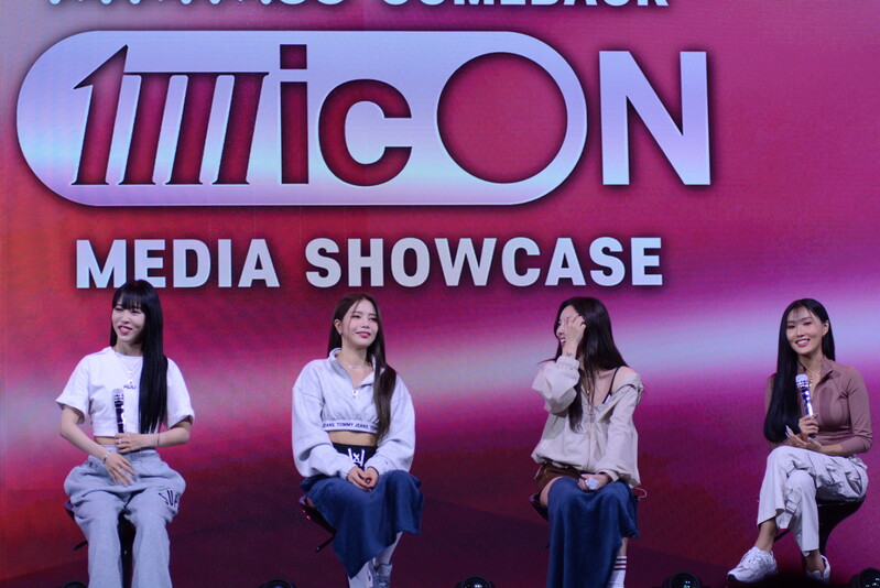 These photos taken during the media showcase of Mamamoo's upcoming 12th mini album "MICON" shows member of Mamamoo participating in question and answer session and individual and group photo session.