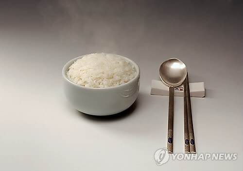 | ▲ This photo shows a steaming bowl of rice next to a set of eating utensils called 'su-jeo.' |